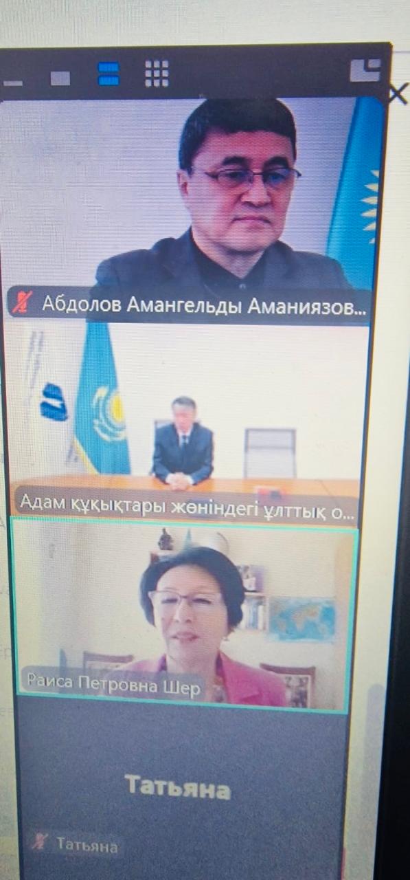 Работники Представительства Национального Центра по правам человека по Атырауской области приняли участие в очередном онлайн-тренинге для членов НПМ, посвященного вопросам соблюдения международных норм при обращении с лицами, находящимися во временной изоляции.