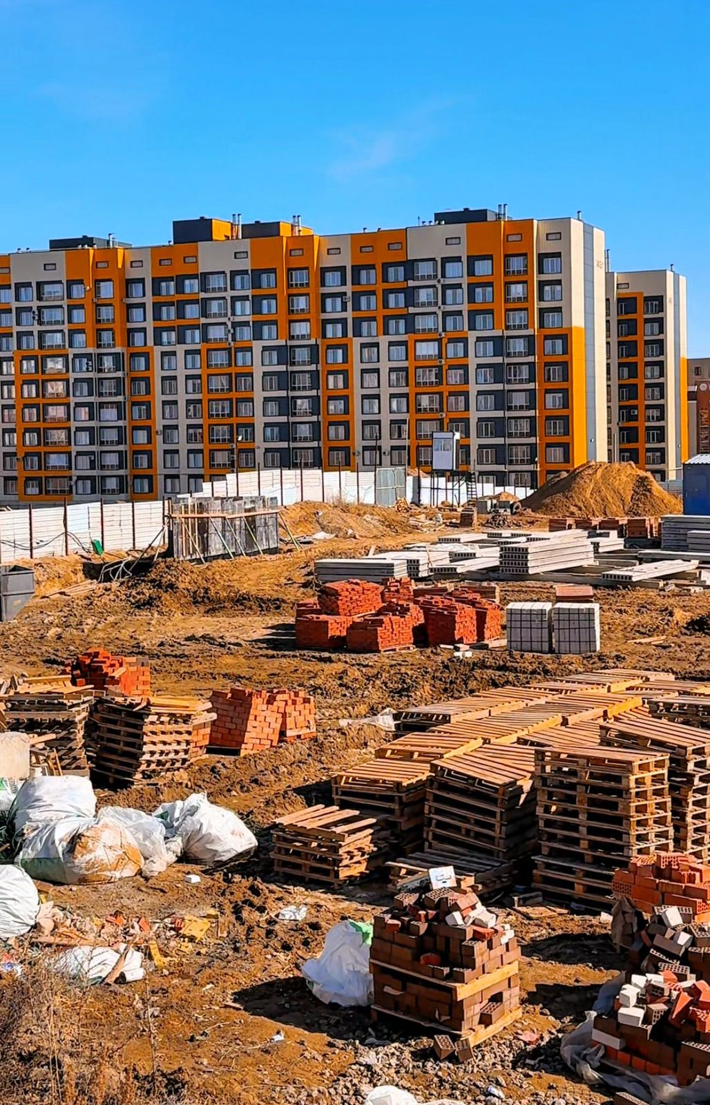 Строительные работы ведутся активно. Рабочие занимаются отделкой внутренних помещений и прокладкой инженерных коммуникаций. Перед подрядчиком стоит задача завершить внутренние и наружные отделочные работы, подключить инженерные сети, благоустроить прилегающие территории и ряд других работ.