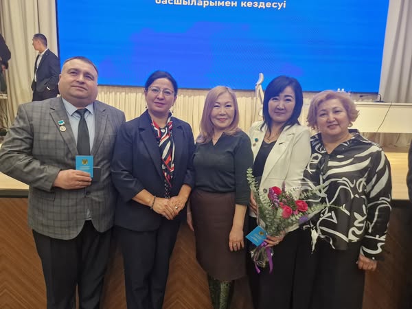 Наши коллеги - руководитель отдела образования района Шал акына Бұлбұл Ахмадиқызы и руководитель Кызылжарского отдела образования Амангельды Ислямбекович, получили награды на совещании, организованном Министерством Просвещения.