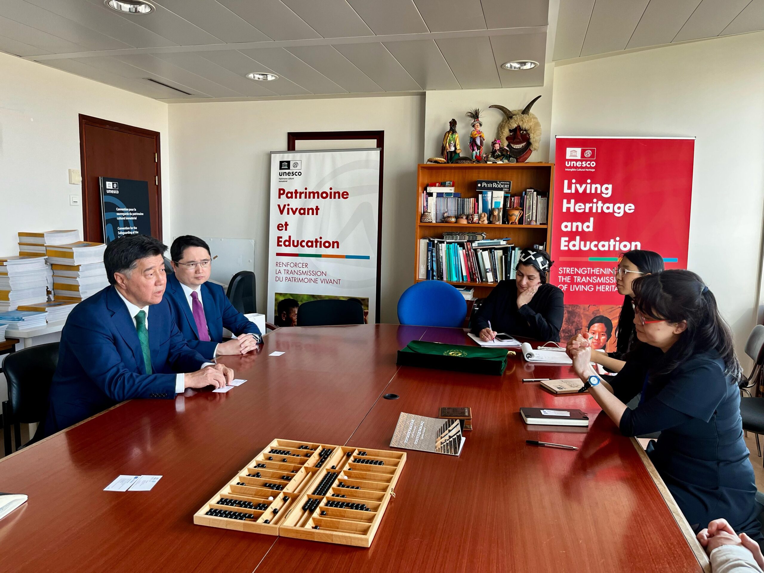Париж, 27 марта 2025 г. – При содействии Постоянного представительства Казахстана при ЮНЕСКО в парижской штаб-квартире Организации состоялась встреча Президента Всемирной федерации Тогыз кумалак Алихана Байменова с главой Секретариата Конвенции об охране нематериального культурного наследия Фумико Охината.