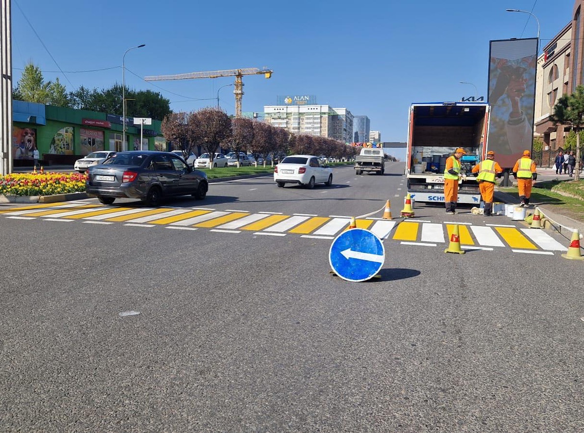 Полностью завершен ремонт дорог по улице Бейбитшилик (между улицей Желтоксан – пр. Республики) и улице Тауелсиздик (между пр. Кунаева и ул. Ерманова).