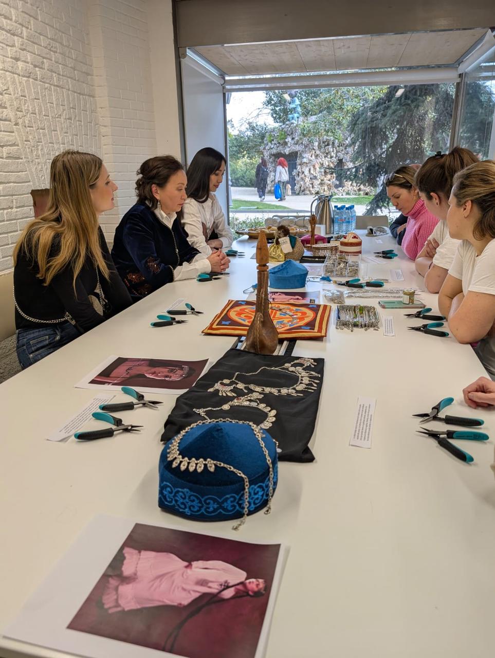 Мадрид, 1 апреля 2025 года – в библиотеке Eugenio Trias, расположенной в самом знаменитом парке Ретиро столицы Испании, прошел мастер-класс по изготовлению казахских национальных украшений, организованный Посольством Казахстана.