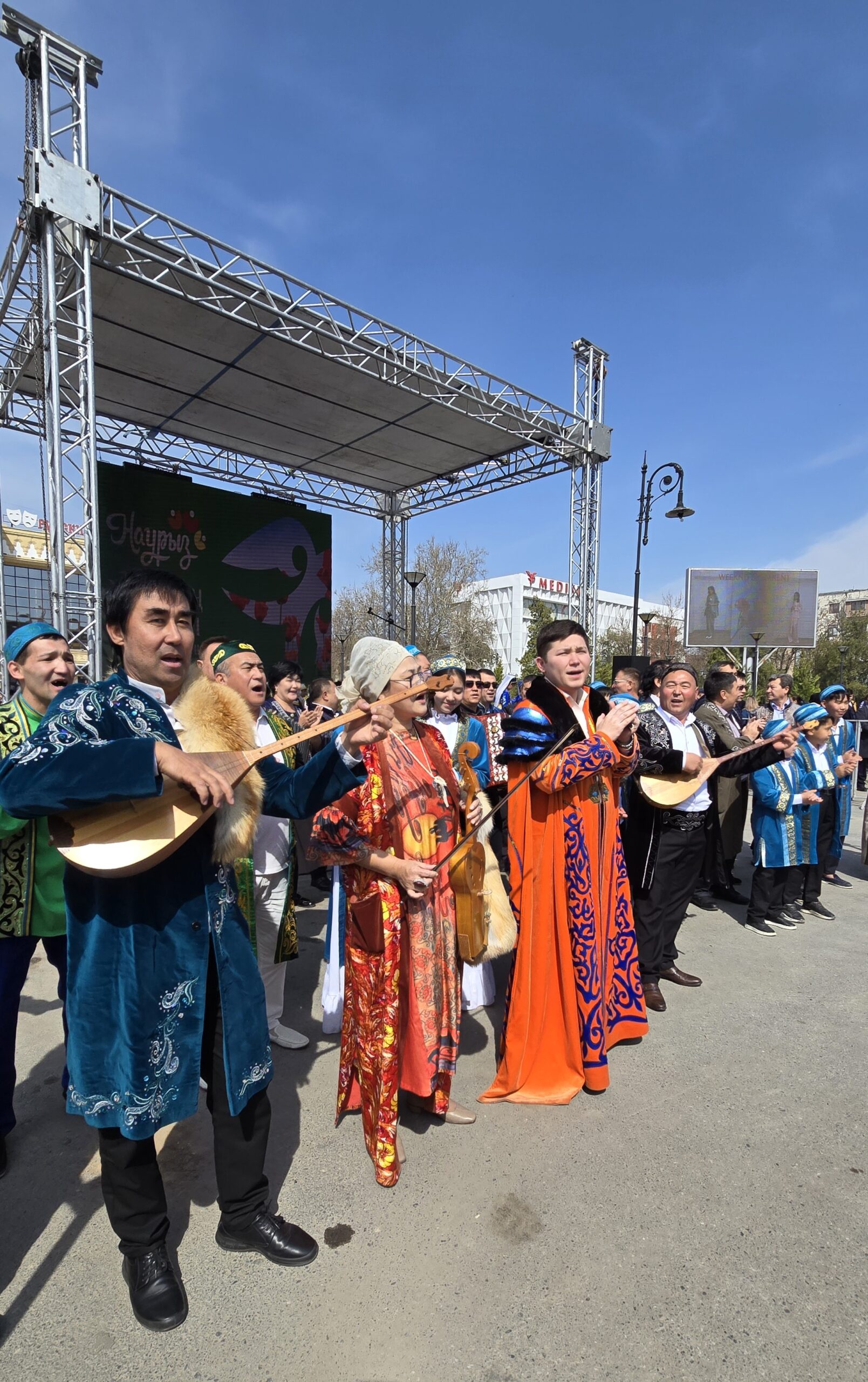 В белоснежных юртах, установленных на площади, для гостей был накрыт специальный стол с традиционными блюдами: баурсаки, кумыс, наурыз-коже, курт, сыр и другие национальные угощения.