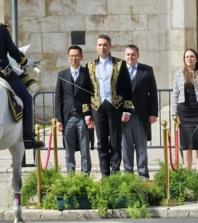Лиссабон, 31 марта 2025 года – На исторической площади «Праса-ду-Империу», а затем в Беленском дворце состоялась торжественная церемония вручения верительных грамот Послом Республики Казахстан Жаном Галиевым Президенту Португальской Республики Марселу Ребелу де Соуза.