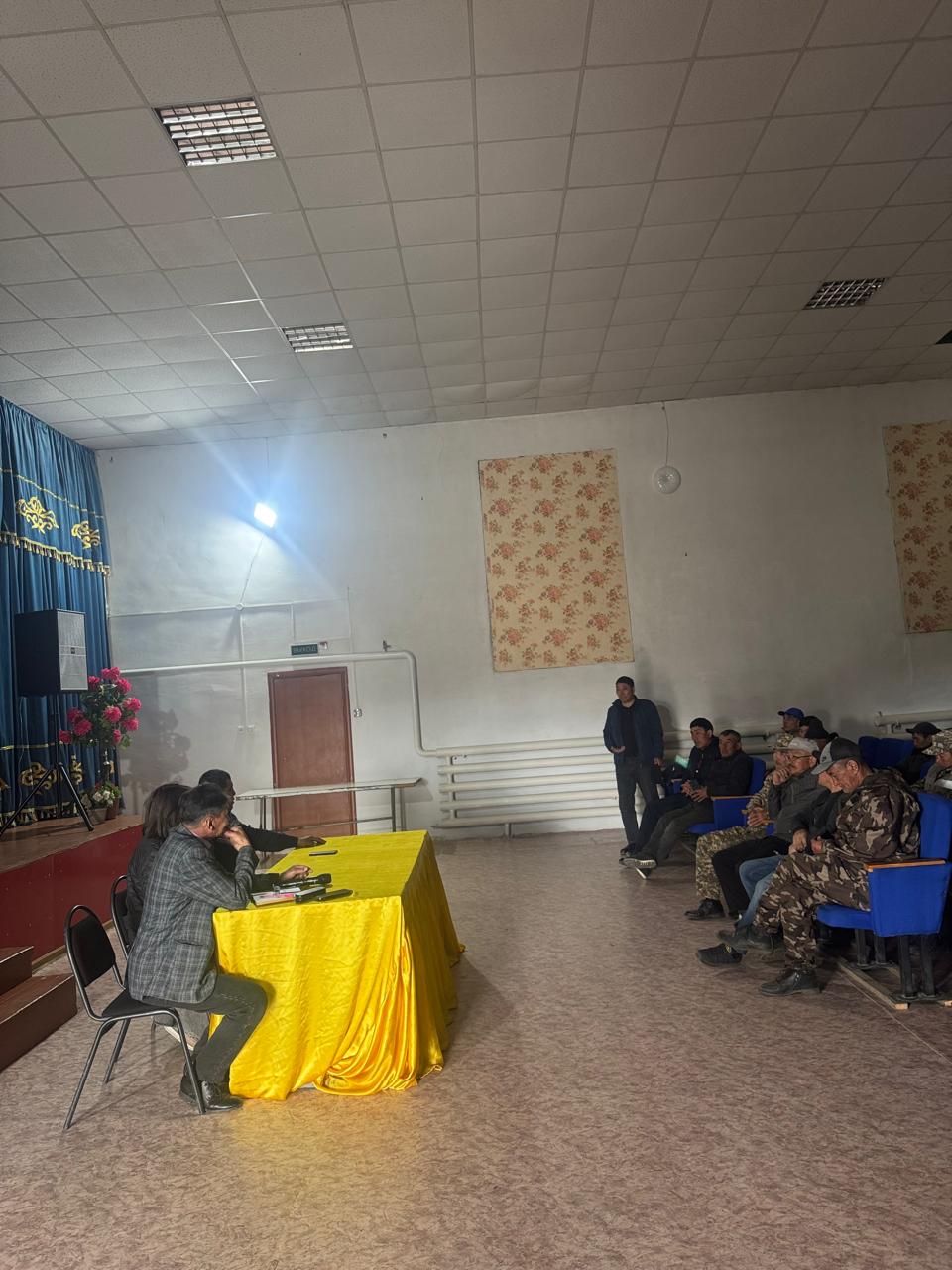 03 апреля текущего года в селе Кумсай совместно с акимом Кумсайского сельского округа Сатаевым Н.Д., руководителями учреждений и участковым инспектором полиции Кумсайского сельского округа Амангали Б.А. проведено общее собрание жителей Кумсайского сельского округа. Основными вопросами, затронутыми в ходе совещания, являются: