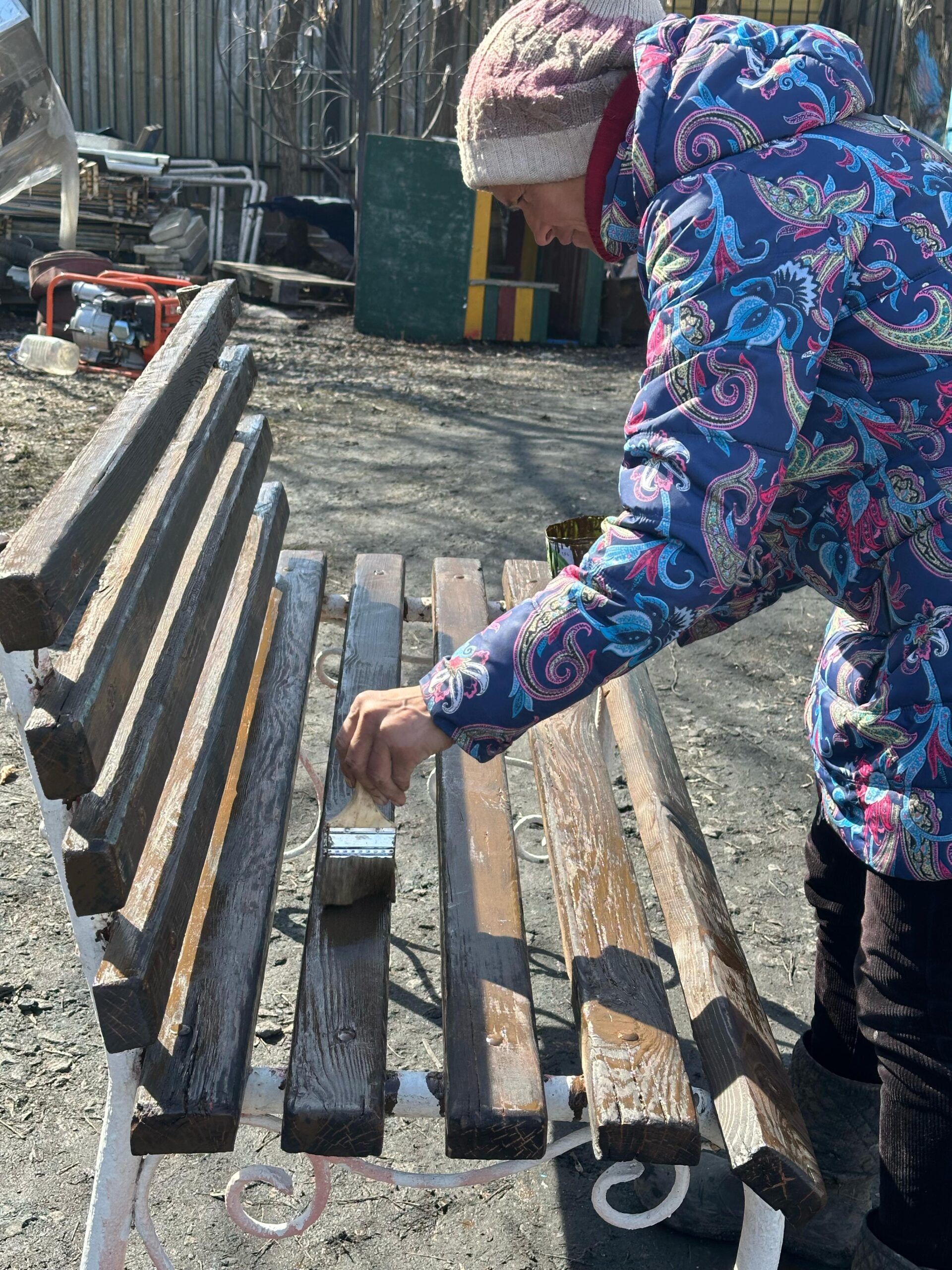 Силами общественных работников в рамках программы “Таза Казахстан” ведется работа по благоустройству: реставрация скамеек.
