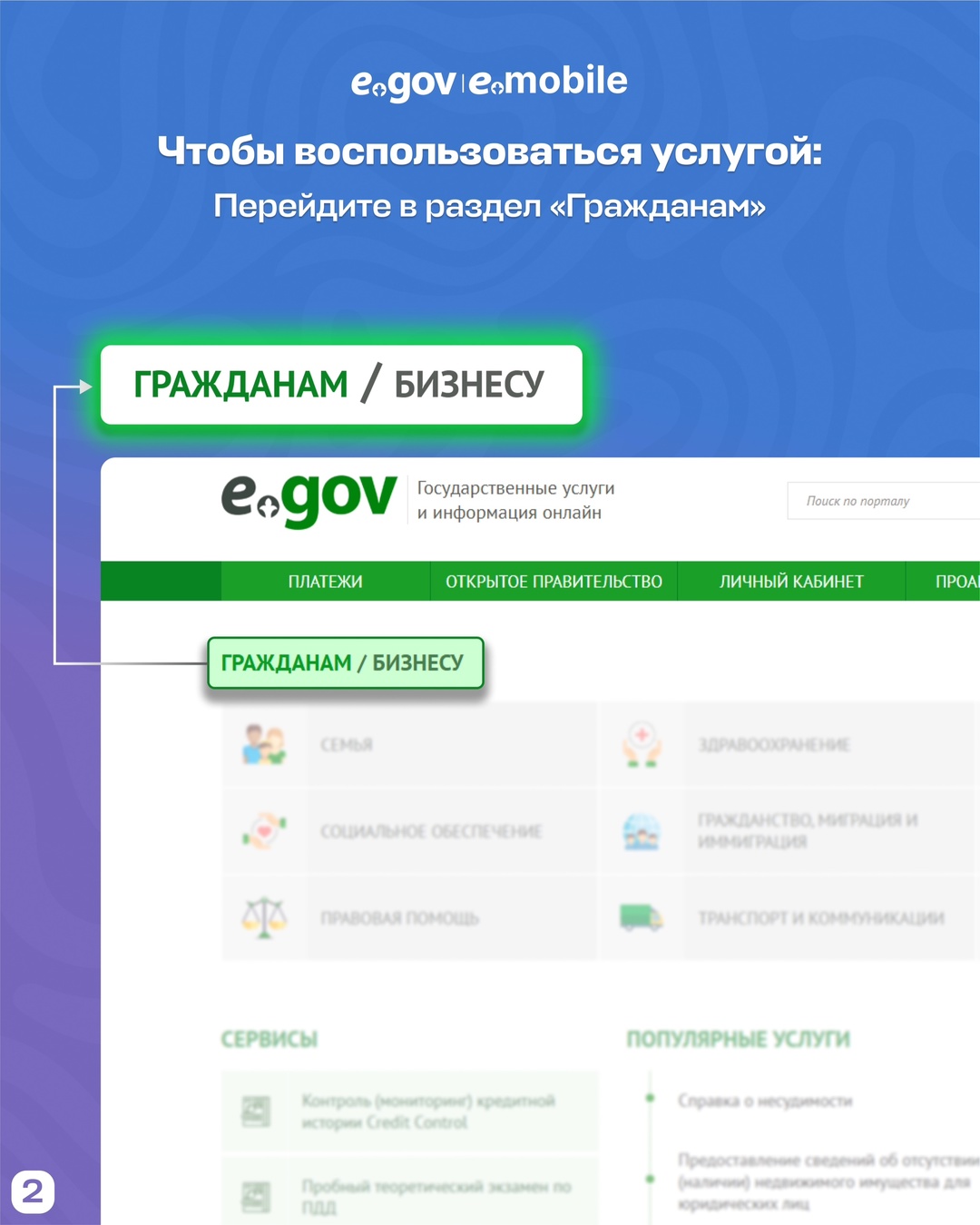 ⚙️Эту услугу можно получить на портале eGov.kz и в приложении eGov Mobile. Для получения справки на портале eGov.kz: