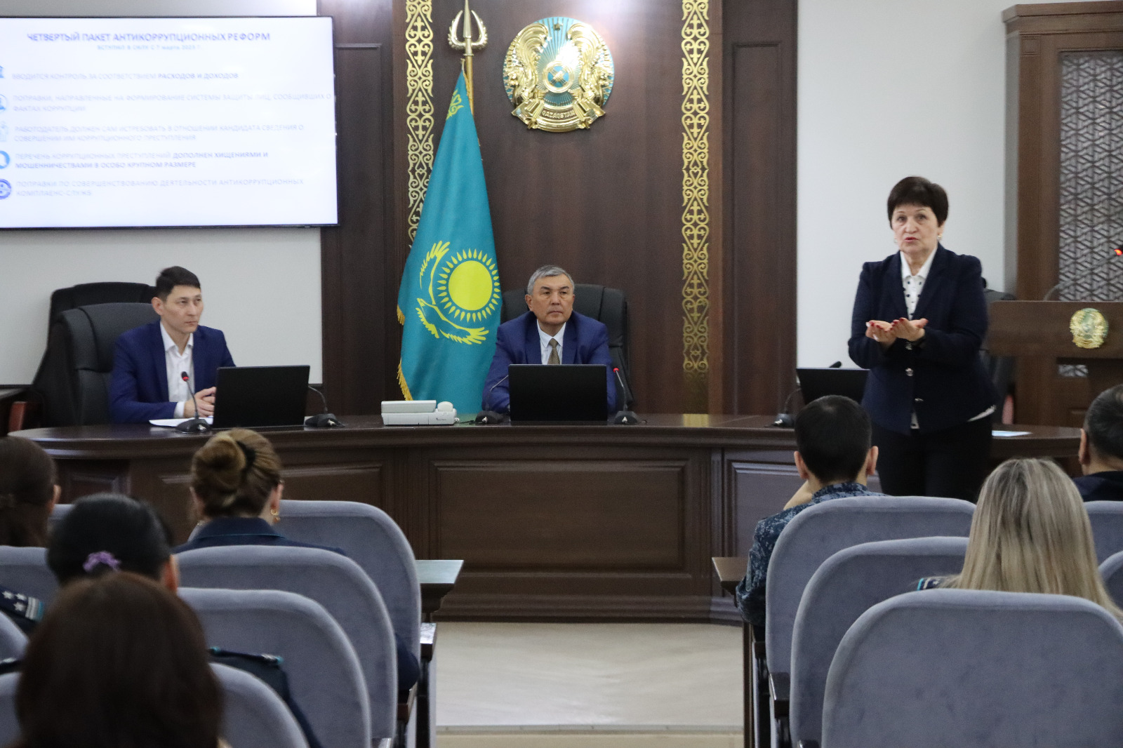 Сотрудник управления собственной безопасности департамента полиции СКО довёл до личного состава аппарата ДП обзор состояния законности в системе МВД по стране и в области. Инспектор департамента агентства по противодействии коррупции Светлана Зайцева проинформировала о мерах, принимаемых государством для выявления и пресечения коррупции.