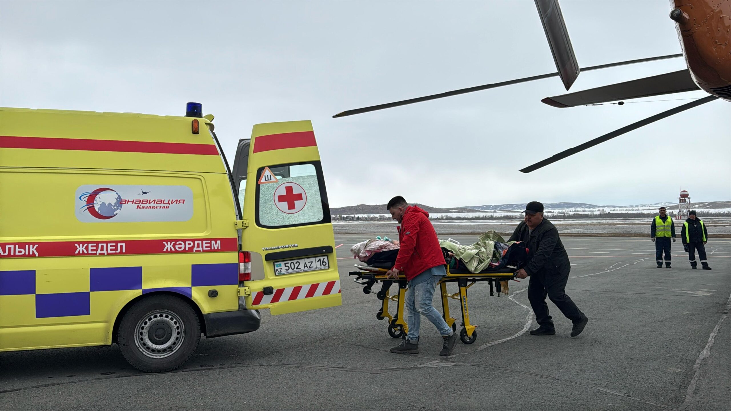 Пилоты «Казавиаспас» МЧС РК Руслан Агламбеков и Бауржан Бутенбаев доставили из района в областной центр тяжелобольную женщину, 1969 года рождения для дальнейшего оказания помощи в медучреждении.