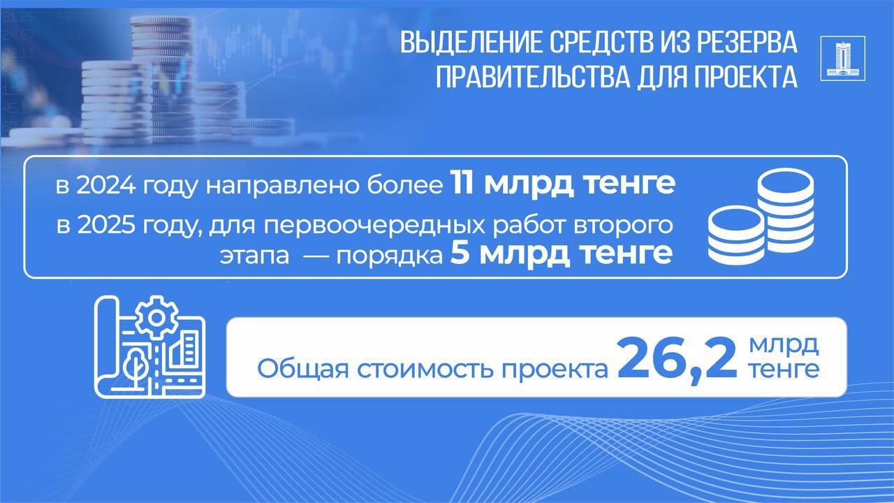 В 2024 году для первого этапа из резерва Правительства было направлено более 11 млрд тенге.