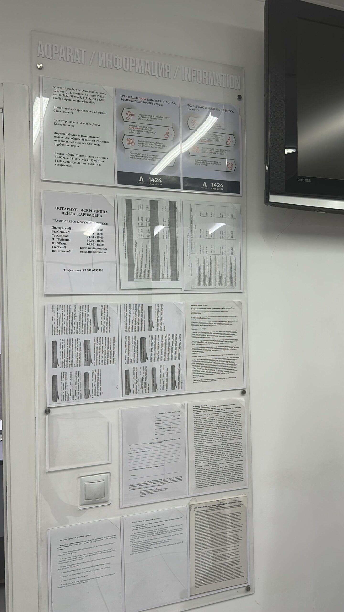 Во всех нотариусах размещены плакаты с информацией о работе единого колл-центра 1424, куда граждане могут обратиться с вопросами или сообщениями о фактах коррупции.