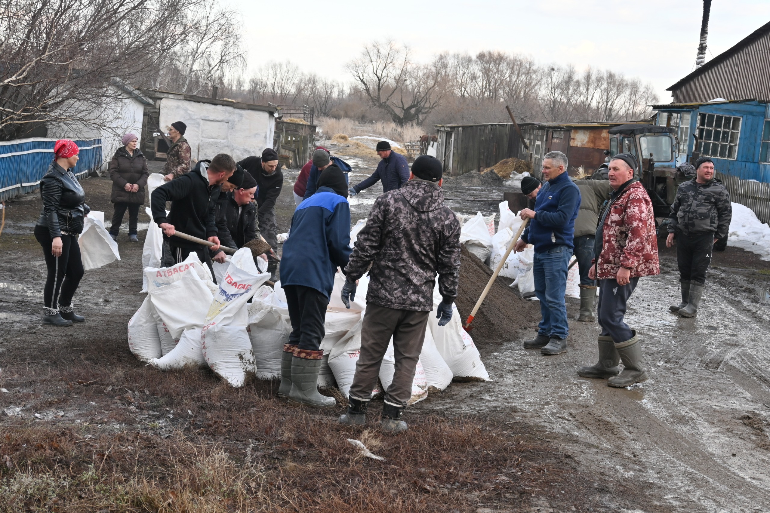 Визит завершился осмотром работ по укреплению берегов в Максимовском сельском округе, где активно заполняются мешки инертным материалом для предотвращения дальнейших паводков.