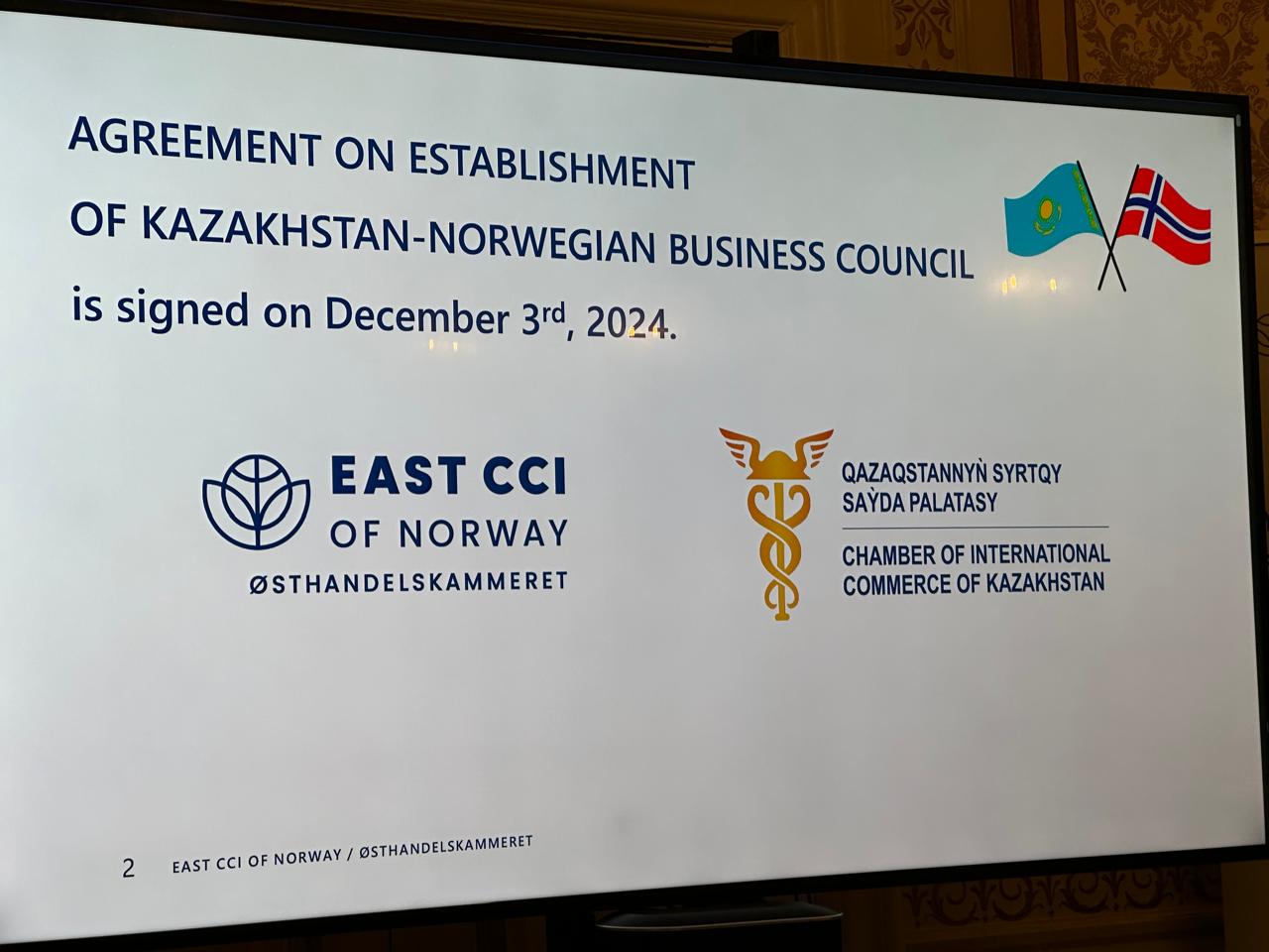 Справочно: Соглашение о создании казахстанско-норвежского Делового совета было подписано 3 декабря 2024 года между Внешнеторговой палатой (ВТП) Казахстана и Восточной Торгово-промышленной палатой (ВТПП) Норвегии.