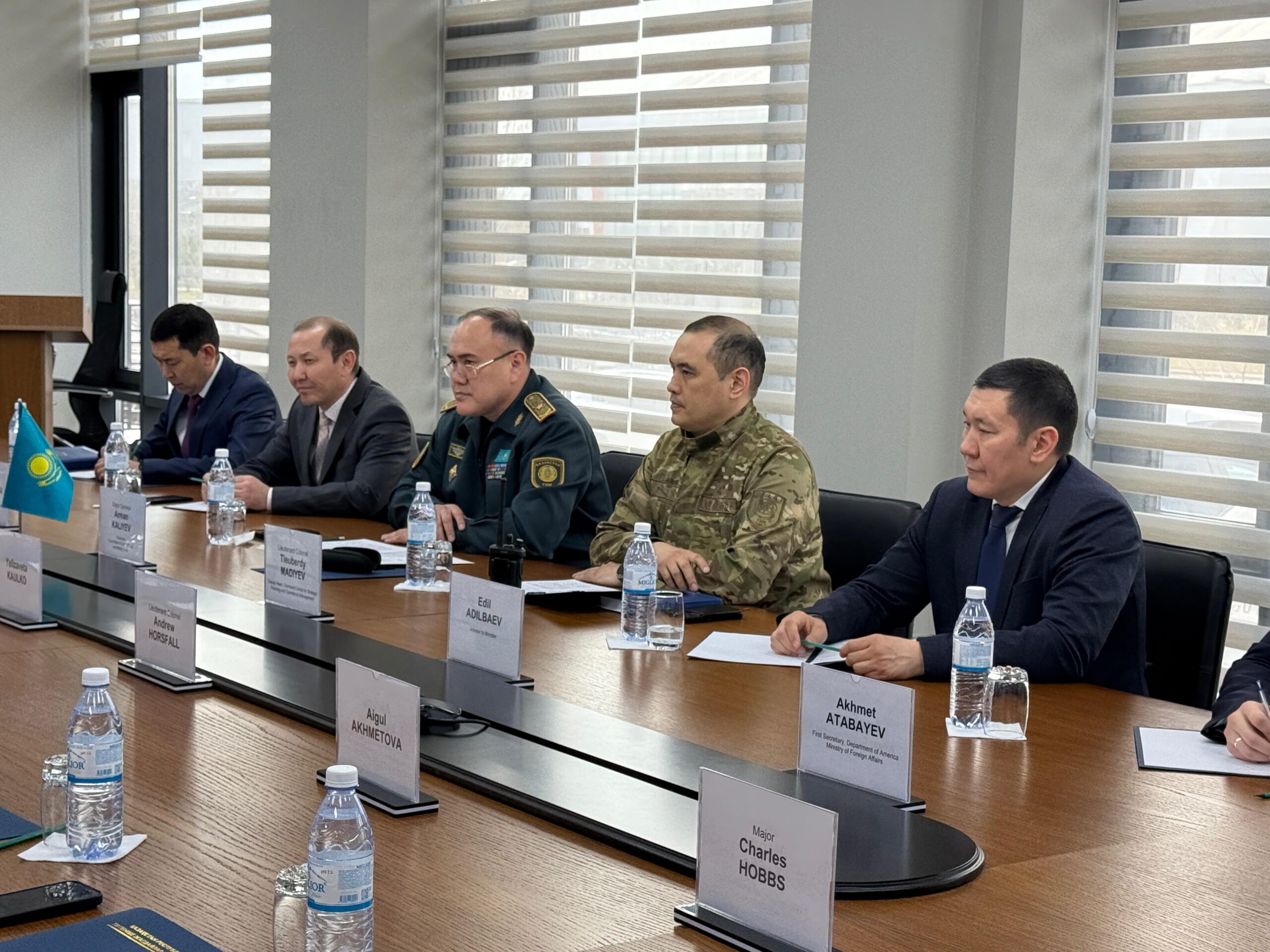 В Командном центре стратегического планирования и оперативного управления Министерства по чрезвычайным ситуациям Республики Казахстан состоялась встреча с участием председателя Комитета по гражданской обороне и воинским частям генерал-майора Армана Калиева и главнокомандующей Национальной гвардии штата Аризона, директора Департамента по чрезвычайным ситуациям генерал-майора Керри Мьюленбек.
