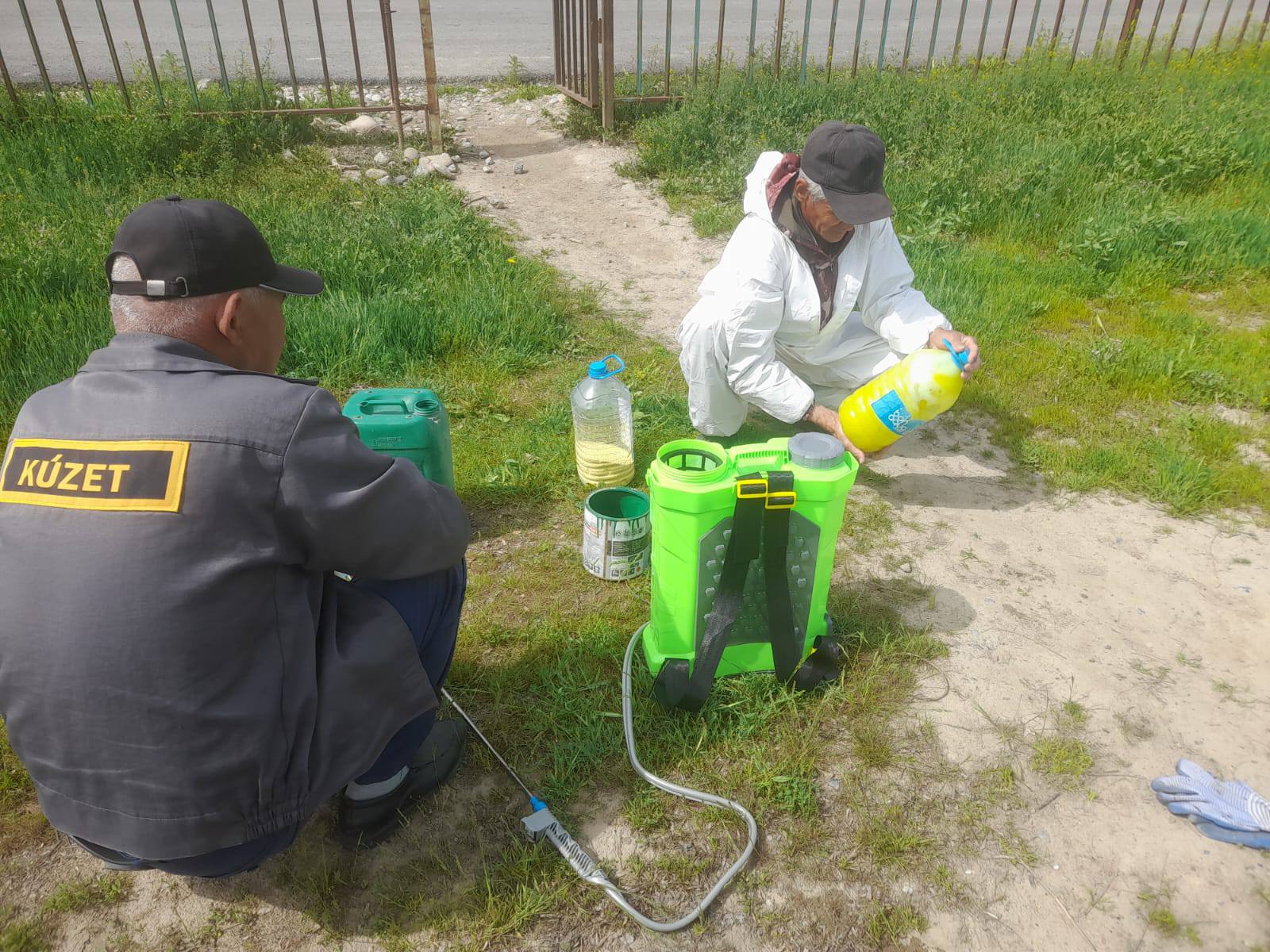 Мекеме қызметкерлері саябақтардағы жол аяқтарды ретсіз өскен зиянды шөптерден тазарту мақсатында, дәрі себу жұмыстарын атқаруда.