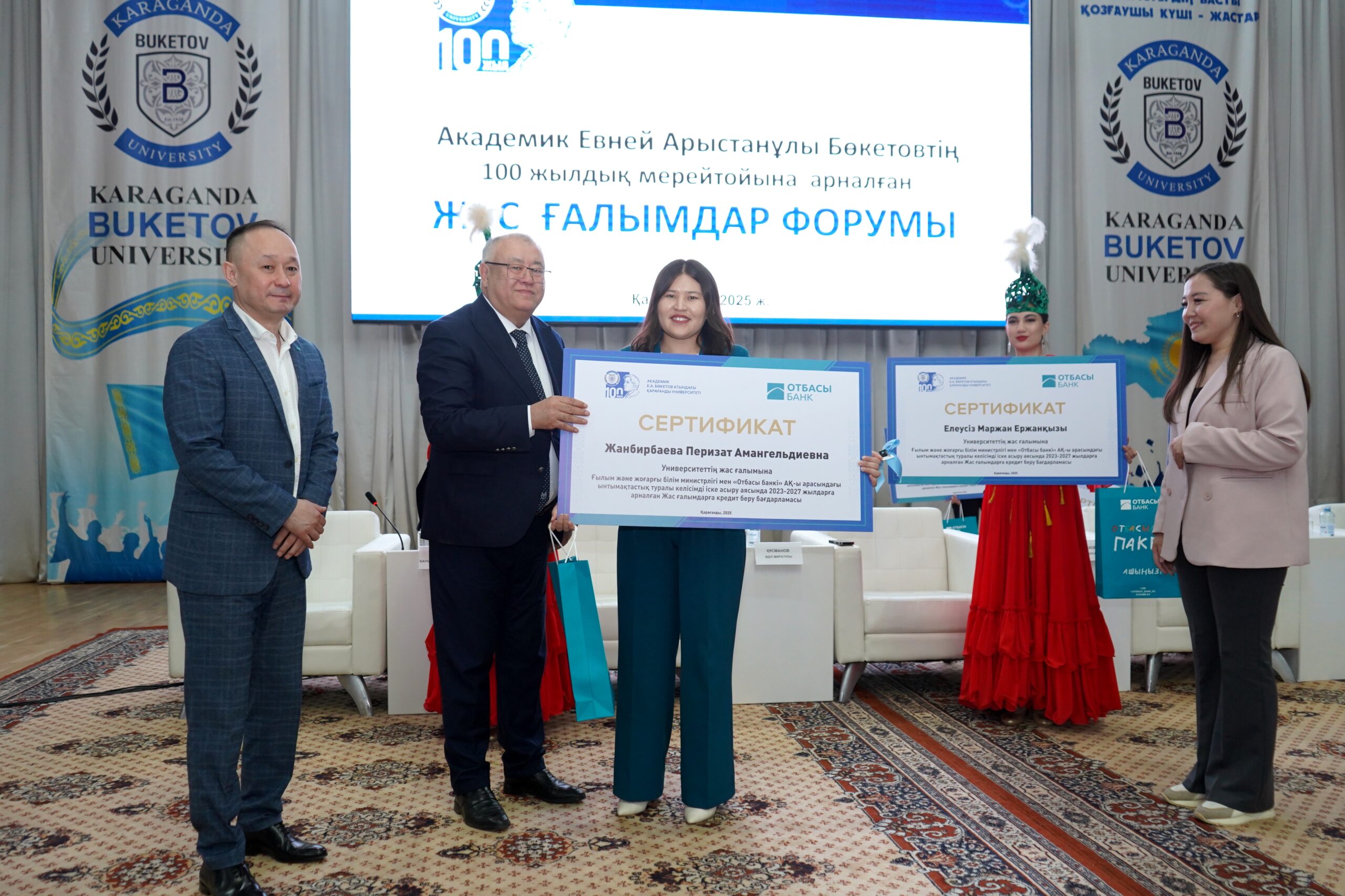 Торжественное вручение состоялось на Форуме молодых ученых, приуроченному к 100-летию со дня рождения Е.А.Букетова. В мероприятии принял участие Председатель Правления центра международных программ «Болашак» Адиль Кусманов.