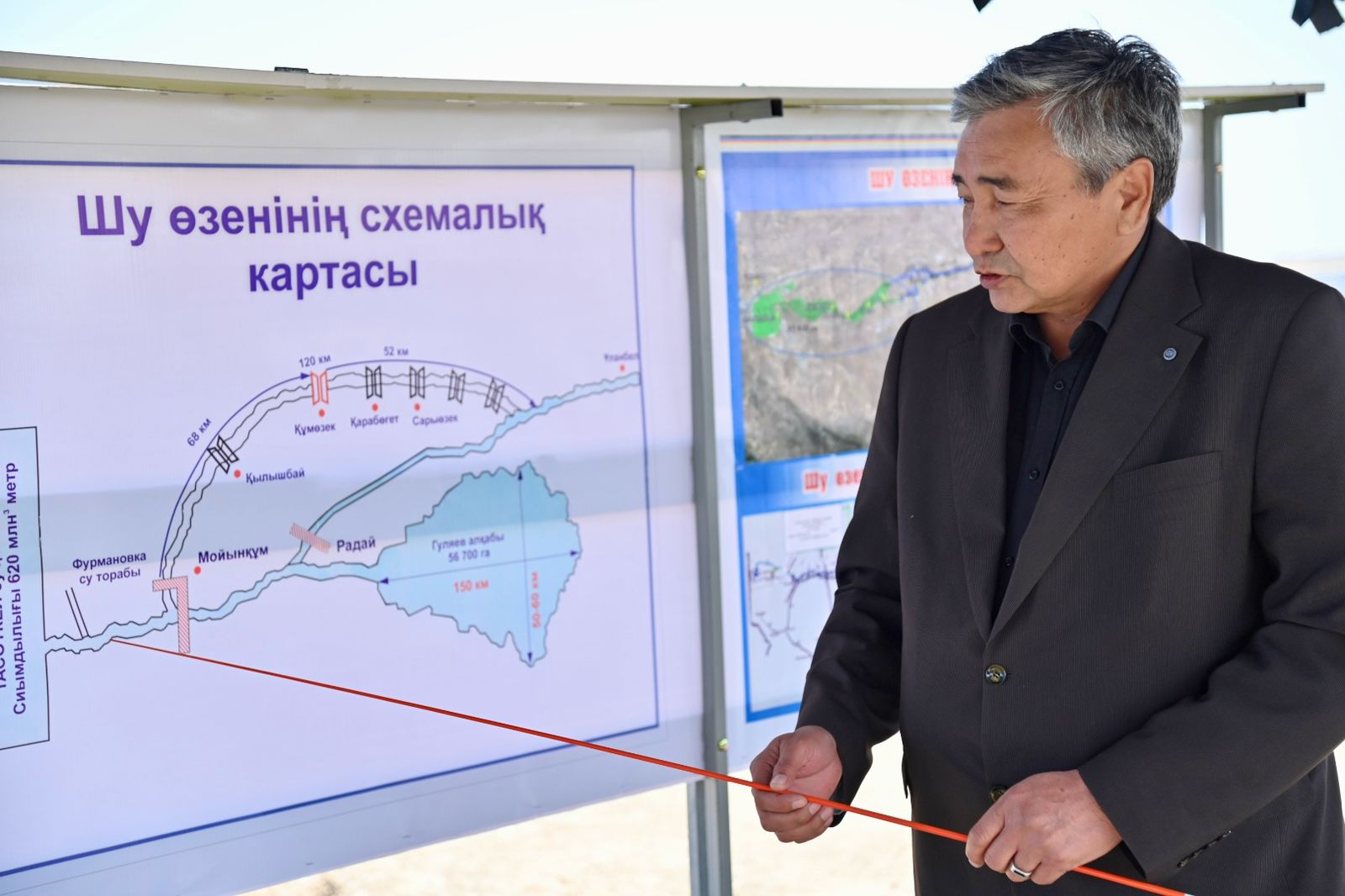 “Министерство намерено регулярно направлять воду в Созакский район. Для этого реализуется ряд важных проектов. В этом году, в результате грамотного распределения и регулирования уровня в реке Шу, вода в Сузакский район пришла на месяц раньше обычного. В прошлом году мы сбросили более 300 миллионов кубометров воды. Не будем останавливаться на этом. До мая планируем спускать 85 кубометров воды в секунду”, – сказал министр.