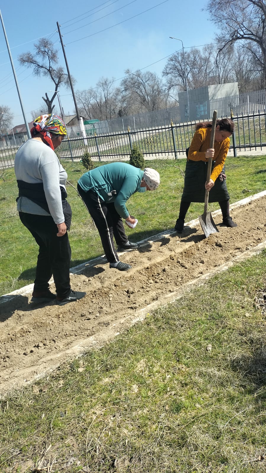 В сельском округе Жолбарыс батыра в селе Кальпе проводились работы по озеленению на территорри детской игровой площадки и ” Памятника воинам не вернувшихся с войны”.