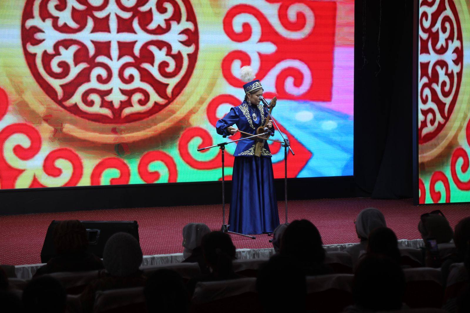 Вечер начался с произведения Нуртугана шайра «Қанеки, тілім сөйлеші!», которое сразу тронуло сердца зрителей. Елмұра Манасқызы вместе со своими учениками поднялась на сцену, продолжая золотую нить великого искусства.
