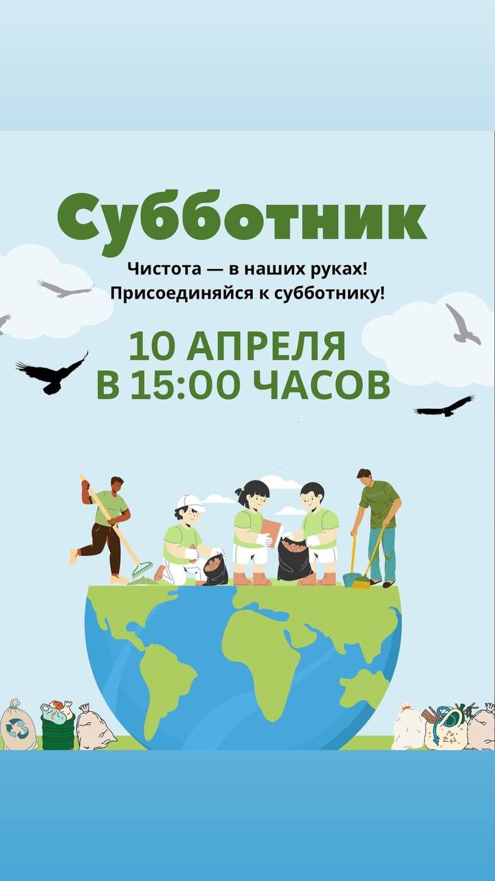 Приглашаем всех неравнодушных принять участие в субботнике! Дата и время: 10 апреля в 15:00. Вместе мы сделаем наш город чище и красивее! Участие каждого имеет значение!