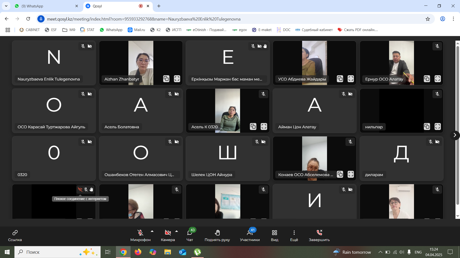 04 марта текущего года на платформе «Qosyl» в режиме онлайн проведена техническая учеба на тему «Пособие на рождение и по уходу за ребенком» и «Пособие награжденной матери» «Право на пособие награжденной матери» с участием сотрудников бэк, фронт-офиса (всего 23 сотрудников) филиала НАО «Государственная корпорация» Правительство для граждан» по Алматинской области.