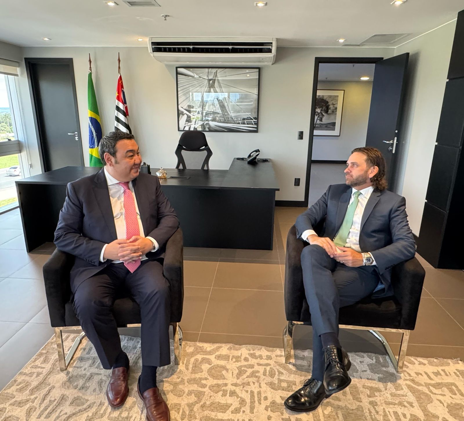 Бразилиа, 3 апреля 2025 года – Посол Казахстана в Бразилии Болат Нусупов посетил представительство штата Сан-Паулу при Федеральном Правительстве Бразилии и встретился с его руководителем Секретарем господином Жозе Винсенте Сантини.