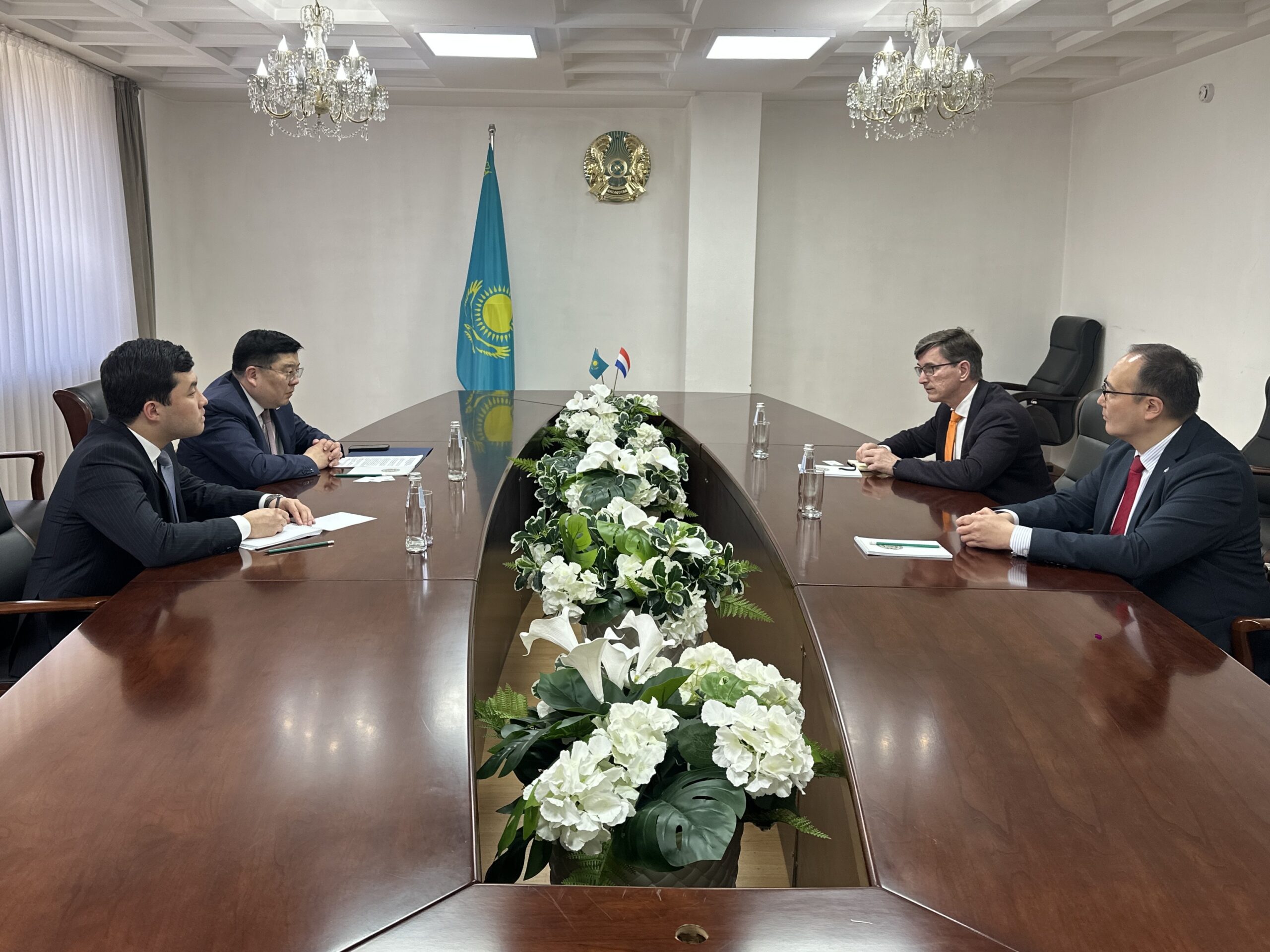4 апреля 2025 года Посол по особым поручениям – руководитель Представительства Министерства иностранных дел Республики Казахстан в г. Алматы Жанибек Абдрашов принял Посла Королевства Нидерландов в Республике Казахстан Нико Схермерса и Почетного консула Королевства Нидерландов в Республике Казахстан Чингиза Канапьянова. В ходе беседы были обсуждены текущее состояние и перспективы развития казахско-нидерландского сотрудничества в инвестиционной, торгово-экономической и культурно-гуманитарной сферах. Особое внимание было уделено взаимодействию в области агропромышленности и управления водными ресурсами. Ж. Абдрашов отметил заинтересованность казахстанской стороны в реализации совместных проектов, направленных на обмен опытом и внедрение передовых технологий. В завершении встречи стороны подтвердили готовность к активизации дальнейшего сотрудничества для укрепления стратегического партнёрства между Казахстаном и Нидерландами.