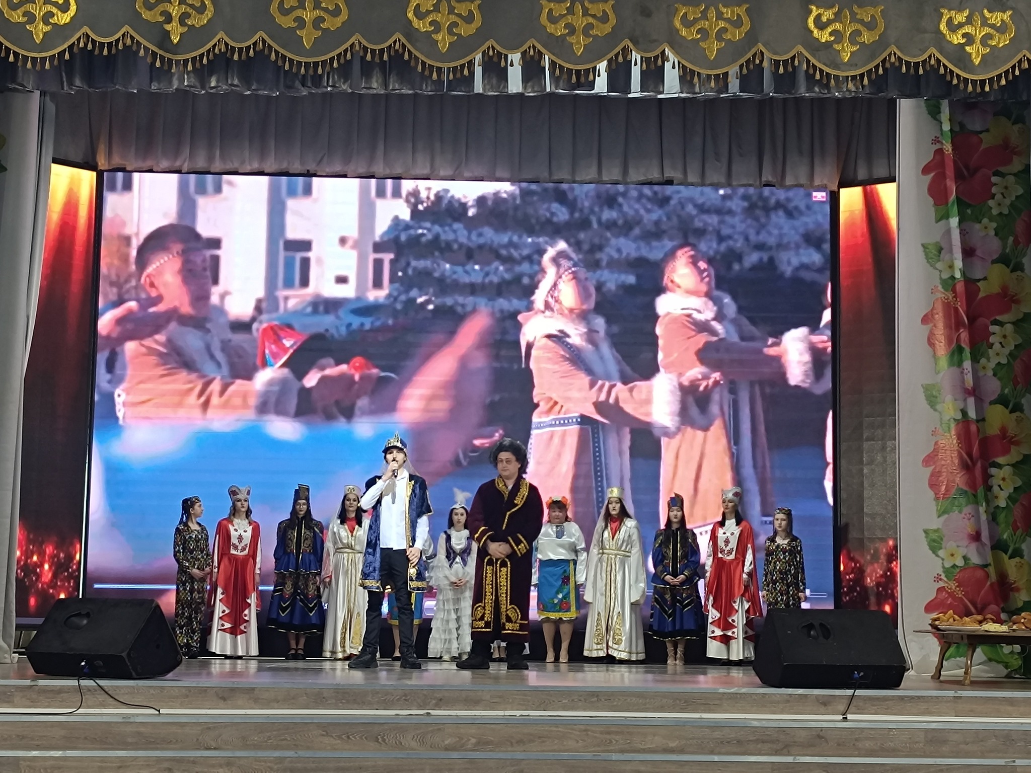 Ведущие смотра, Батима Жантасова и Гулжаз Кулманова, после приветствия зрителей и участников, представили жюри, оно состояло из заместителя акима района по социальным вопросам-Сапанова Б.А., руководителя отдела внутренней политики, культуры и развития языков-Байкеновой А.А., директора районного Дома культуры-Синдякиной Н.А.