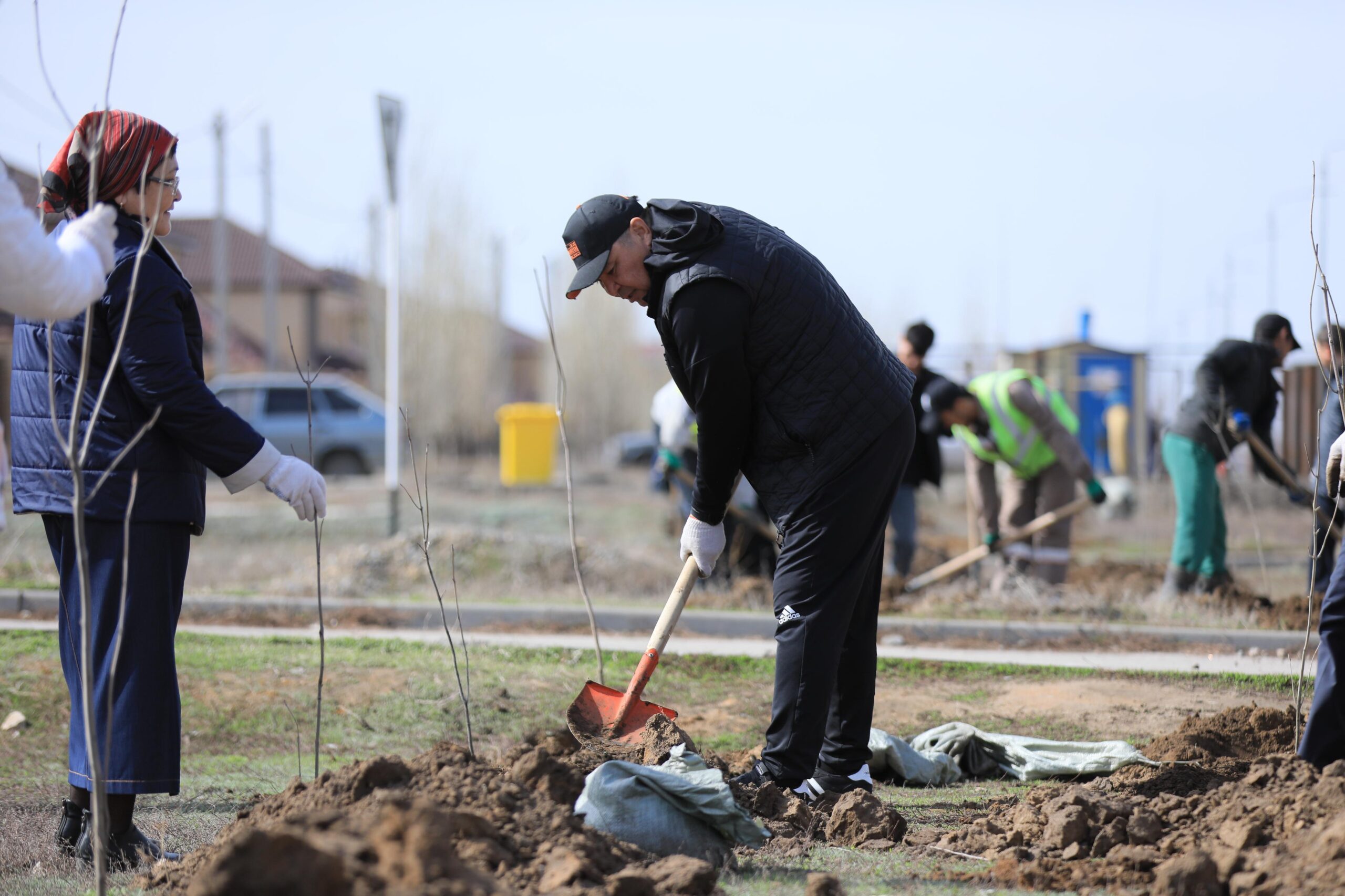 В микрорайоне Алтын Орда района Астаны на улице Ораза Татеулы активисты высадили 700 саженцев.