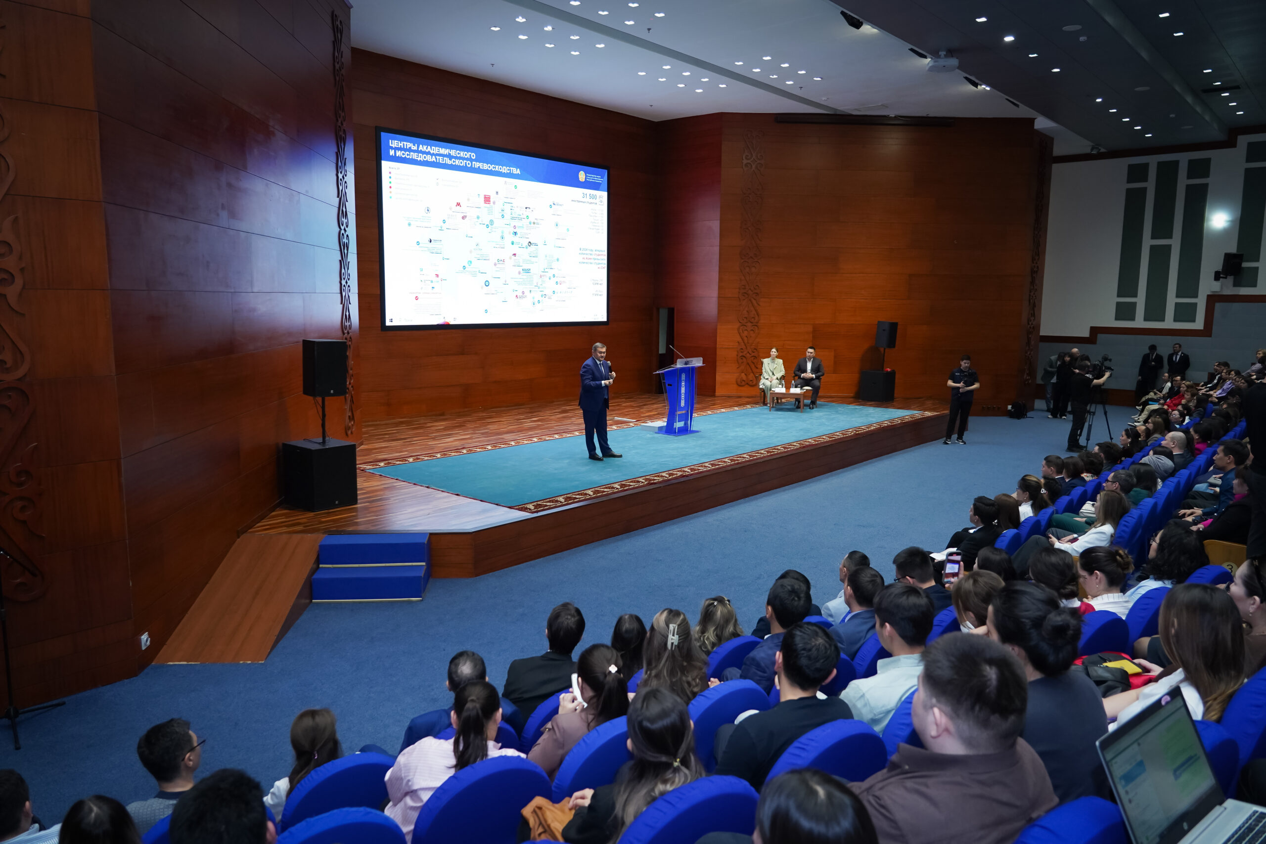 «Нам сейчас нужны прикладные идеи и проекты, сильные команды. На сегодняшний день междисциплинарные исследования являются потенциальными и эффективными. Верьте в себя, мы вас будем поддерживать изо всех сил. Используйте возможности. Нам нужны новые проекты, новые лица. Отрадно отметить, что 46% из 25,5 тысяч ученых – молодые ученые до 40 лет», – сказал министр, обращаясь к публике.