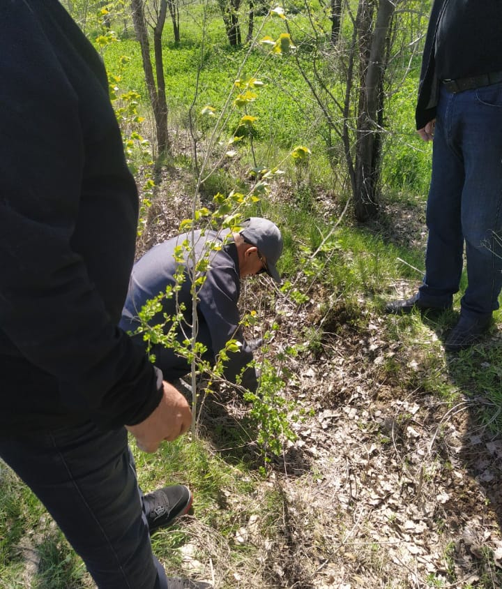 В селе Өрнек проводится восстановление и пересадка деревьев, высаженных ранее.
