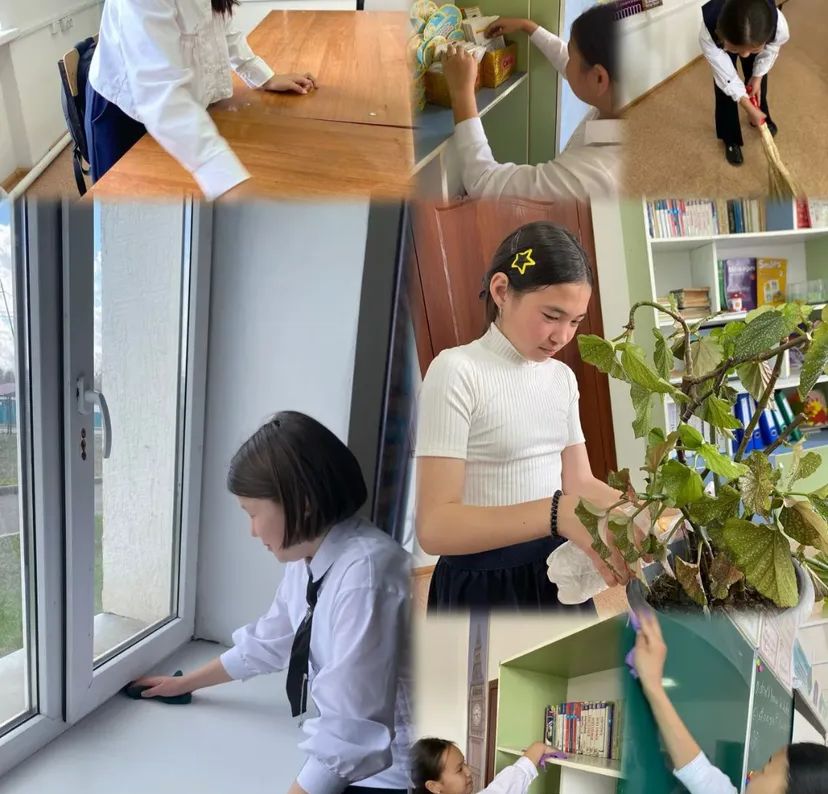 В апреле 2025 года в рамках экологической акции “Зеленая школа” была проведена уборка учебных кабинетов с участием учащихся 5-11 классов.