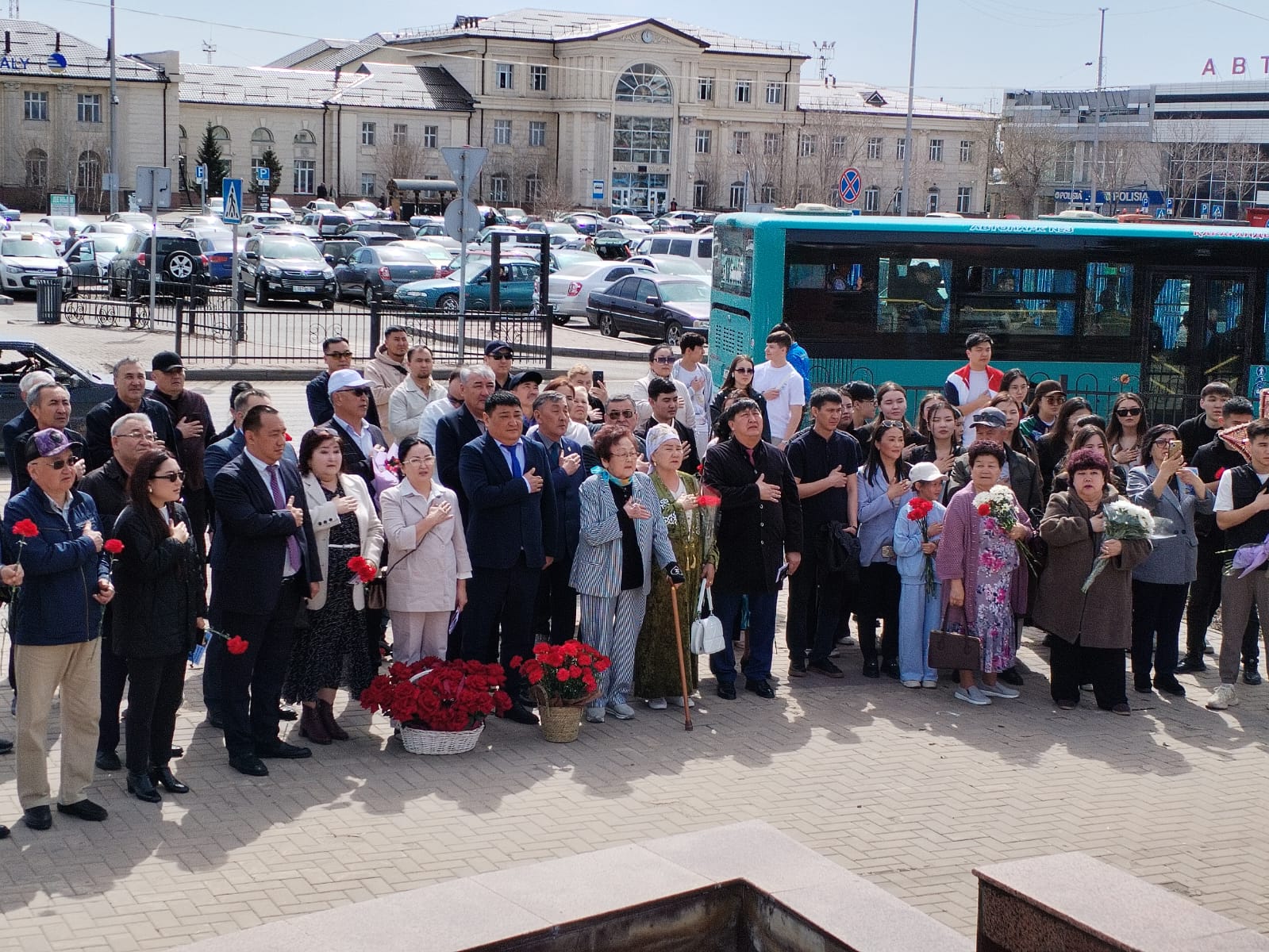 В ходе торжественного мероприятия были возложены цветы к памятнику великого геолога Каныша Имантаевича Сатпаева.