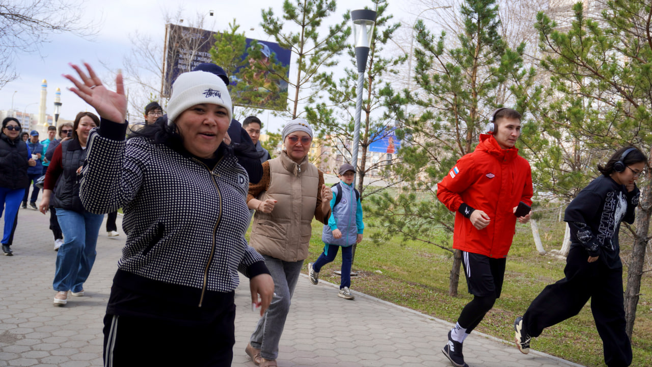 После утренней разминки они пробежали вместе с акимом города Ануаром Кумпекеевым по проспекту Абылайхана до улицы Сулейменова. Здесь всем участникам забега выдали мешки, перчатки, затем они разделились на группы и начали сбор мусора вдоль улицы Сулейменова.