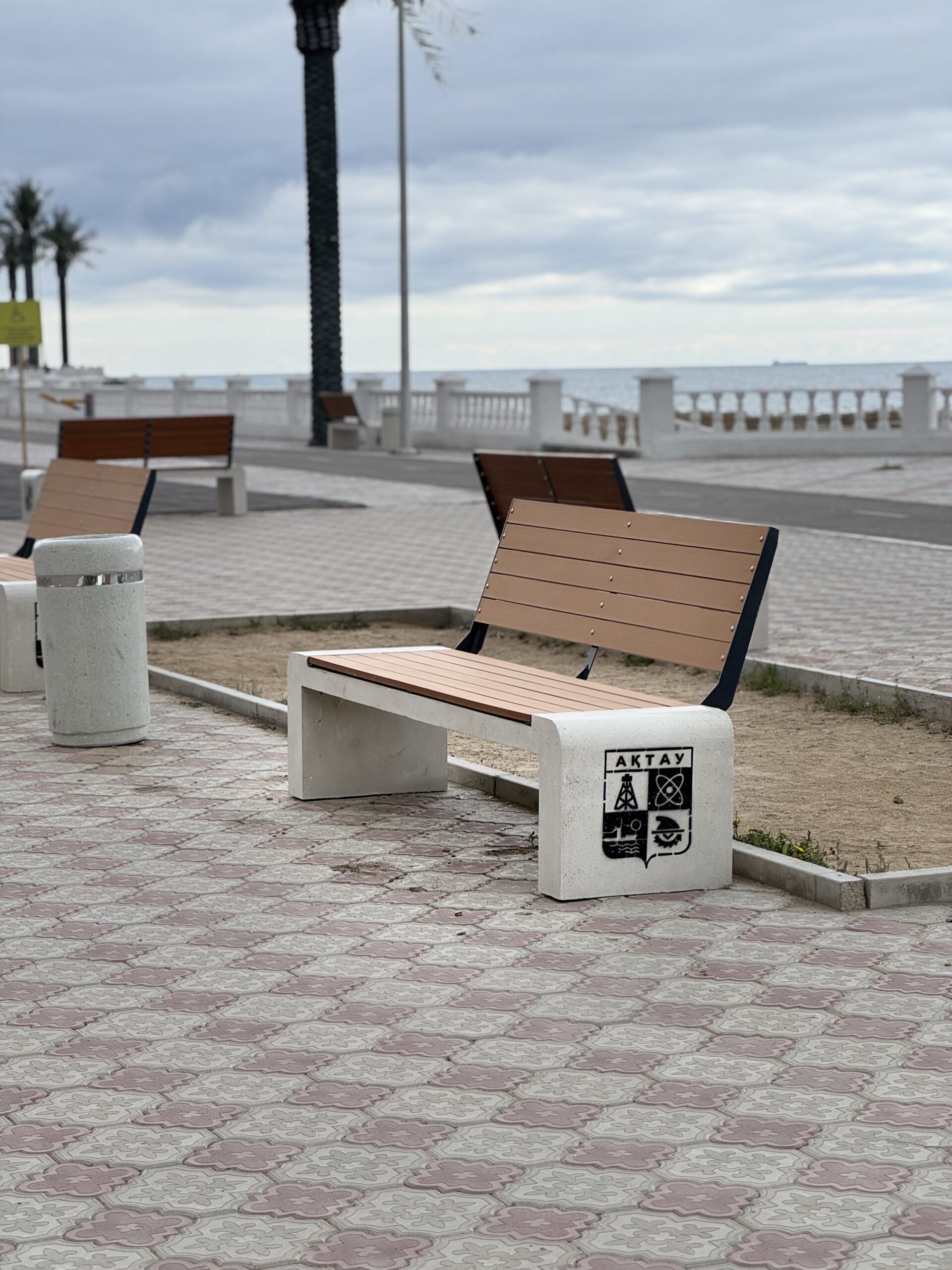 В рамках работ по благоустройству города Актау на набережной и на территории города устанавливаются новые скамейки и урны.