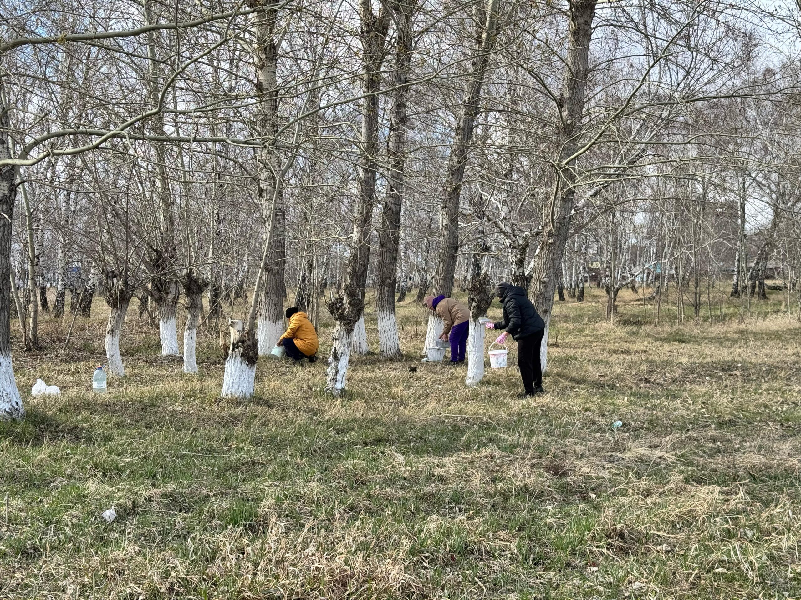 В ходе акции была проведена побелка деревьев и уборка территории.