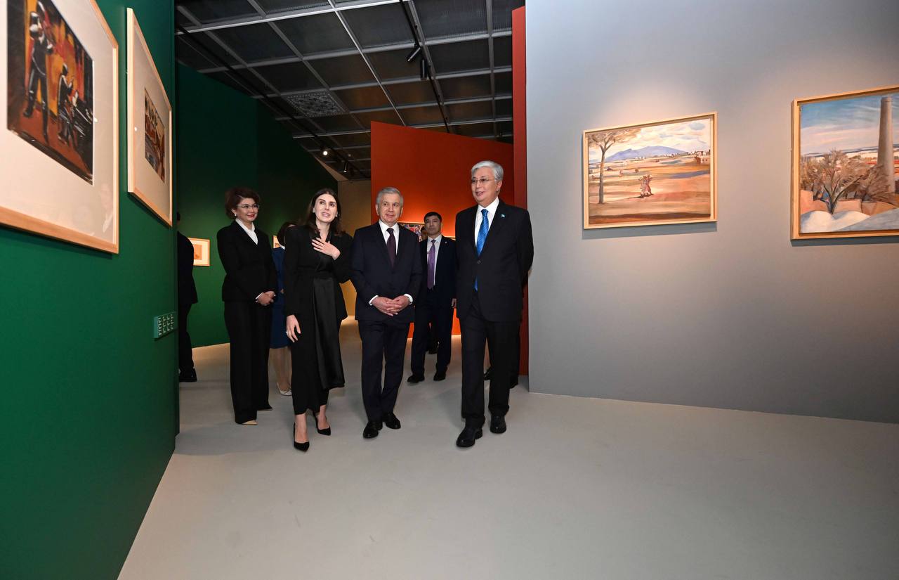 Президенты Казахстана и Узбекистана осмотрели выставку картин Абылхана Кастеева и Урала Тансыкбаева