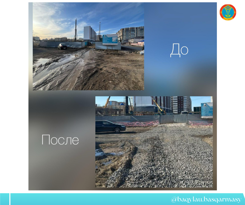 ГУ «Управление контроля и качества городской среды города Астаны» совместно со специалистами районных акиматов, Экологической полиций, АО «Астана-РЭК» во избежание выноса грязи на городскую территорию и по ограждениям строительных объектов произведен мониторинг наличия на объекте пункта мойки колес, твердого примыкания к основному дорожному полотну надлежащего состояния строительных ограждений.