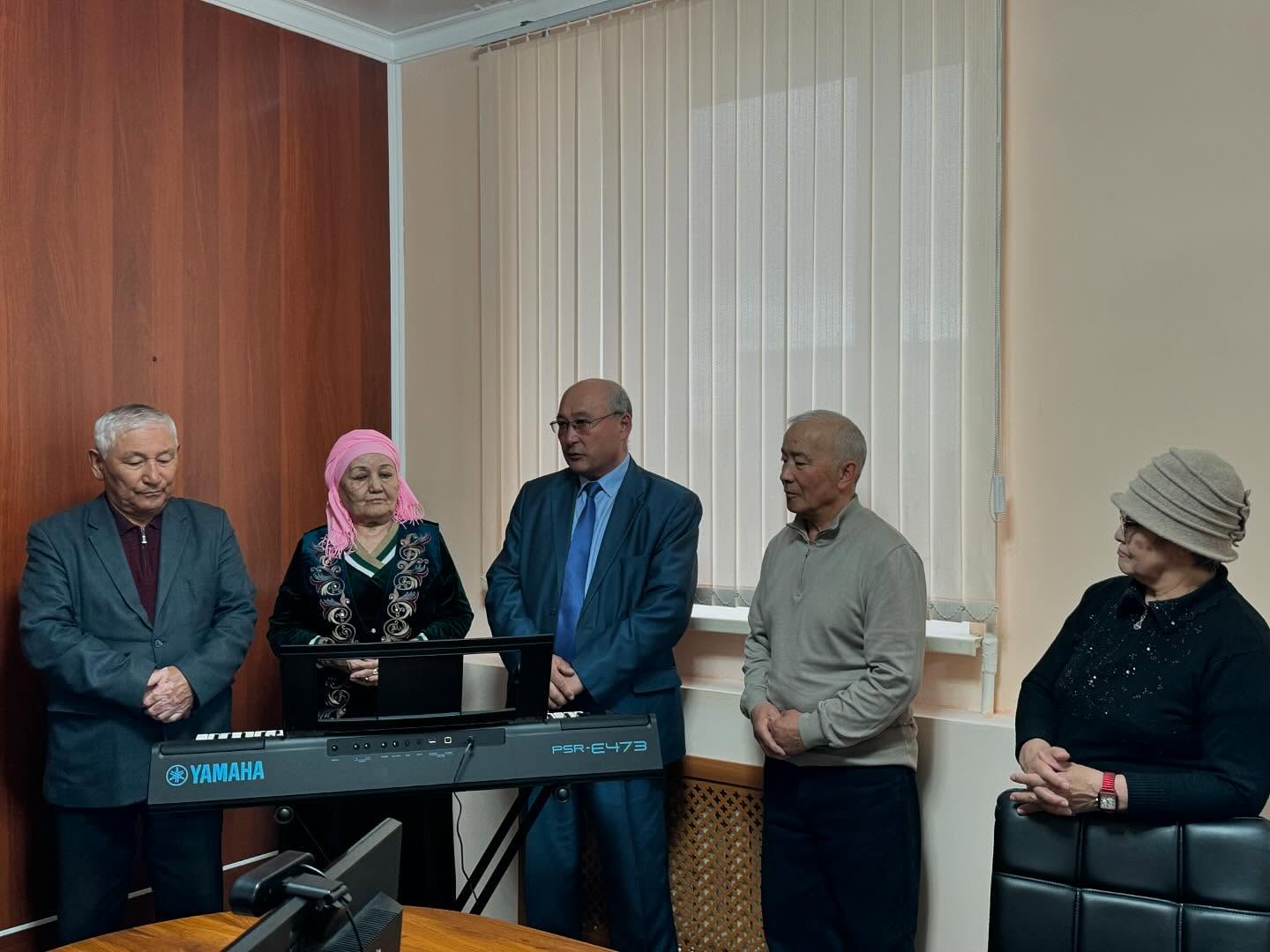 Аким района принял членов общественной организации ветеранов “Абай ұлағаты” и подарил музыкальный инструмент “Yamaha”.