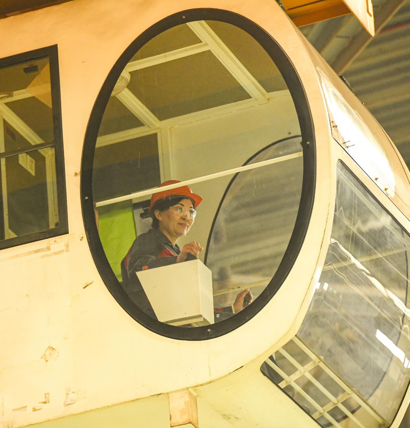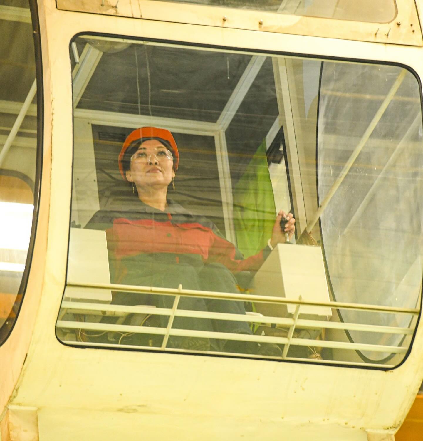 «Я работаю на этом заводе уже более 14 лет. До этого трудилась на золотодобывающем руднике и на горно-химическом комбинате в Степногорске. Мне нравится моя профессия. Когда смотришь с высоты и видишь, как честно трудятся наши ребята, переполняет гордость»,- рассказывает оператор мостового крана.