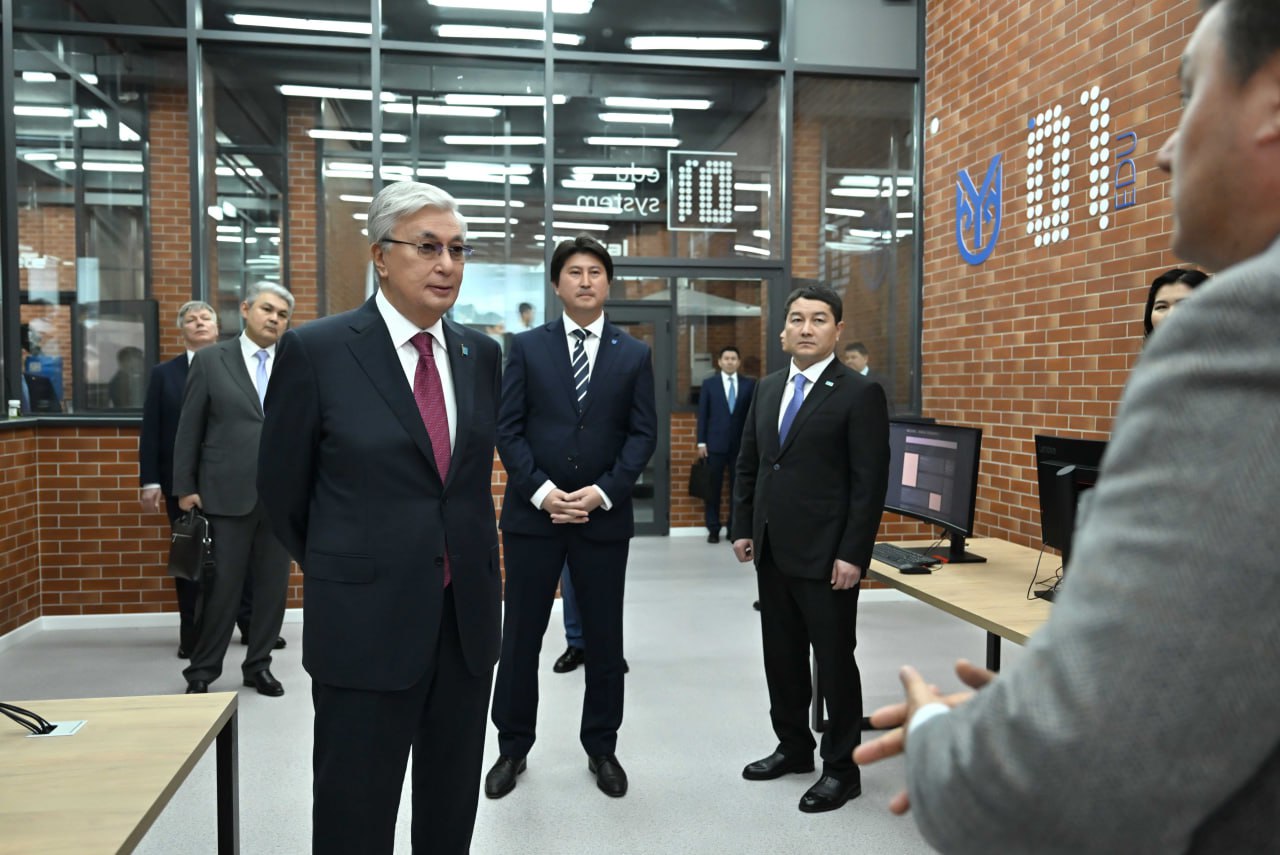 🔵Касым-Жомарт Токаев осмотрел учебную зону для подготовки IT-специалистов по международной программе, а также лабораторию по развитию цифровых и телекоммуникационных компетенций.