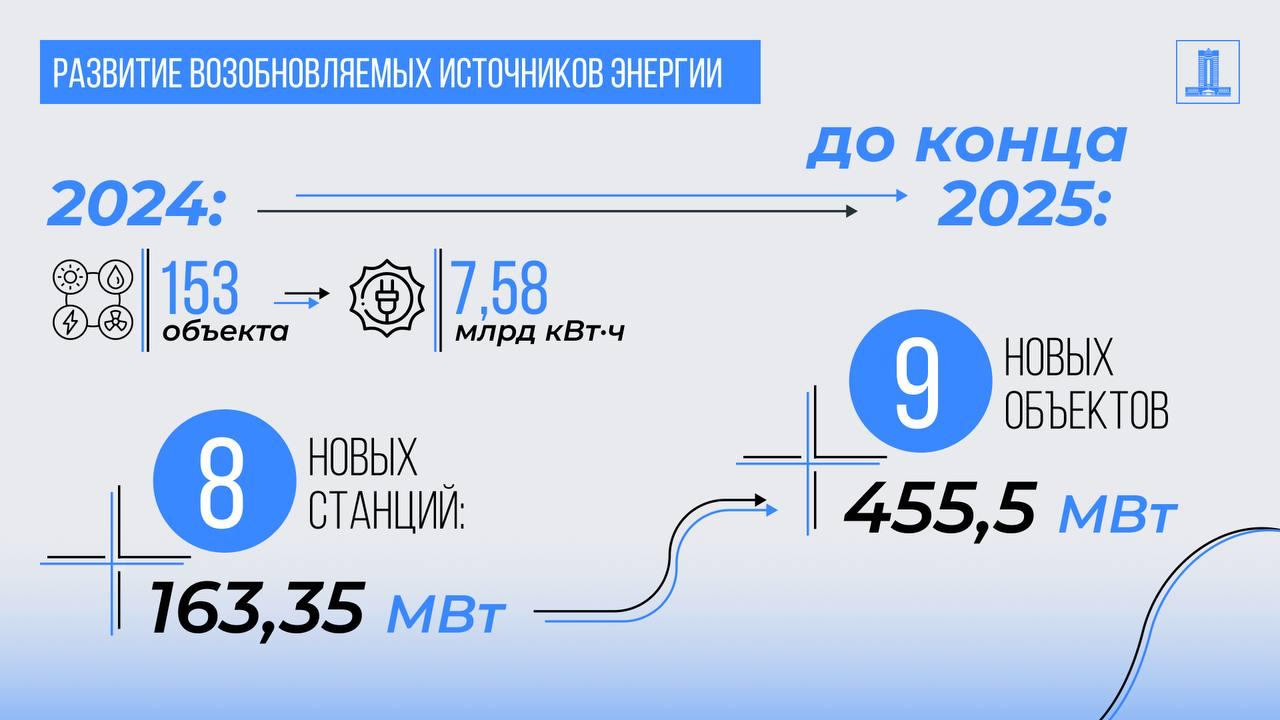 Также приоритетным остается развитие ВИЭ. В 2024 году 153 объекта выработали 7,58 млрд кВт·ч или 6,43% от общего производства. Введено 8 новых станций (163,35 МВт), до конца 2025 года заработают еще 9 объектов ВИЭ (455,5 МВт). К примеру, в феврале введен 1 проект ВЭС мощностью 50 МВт в Карагандинской области ТОО «Гиперборея».