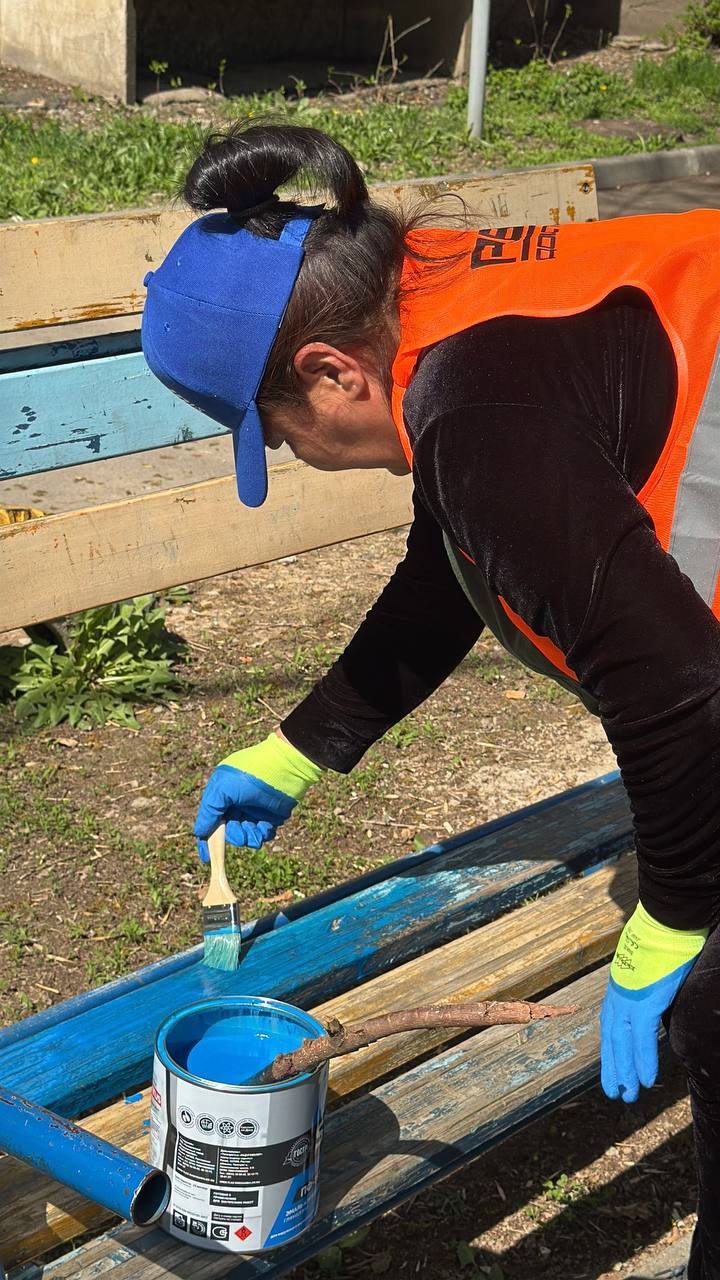 Покрасили скамейки