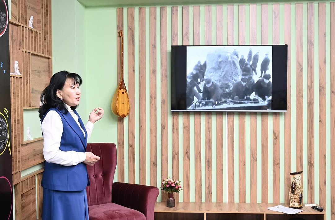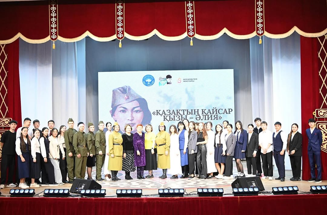 В познавательном мероприятии, посвященном пропаганде славной храбрости казахской девушки Алии Молдагуловой, имя которой вписано на страницах истории и пробуждение патриотического чувства юности, родственница Алии Молдагуловой Хабиева Арья Бисенбайкызы рассказала о жизни и мужестве героя, а продолжение мероприятия было тематической выставкой и поэтическим вечером.