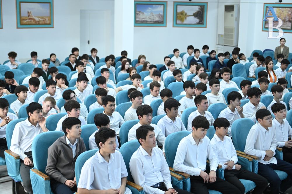 — На встречу мы пригласили исключительно юношей, потому что для нас важно именно их патриотическое воспитание, так как они будущие защитники Родины, — отметила замдиректора АВПК по воспитательной работе Жайнагуль Абиева.