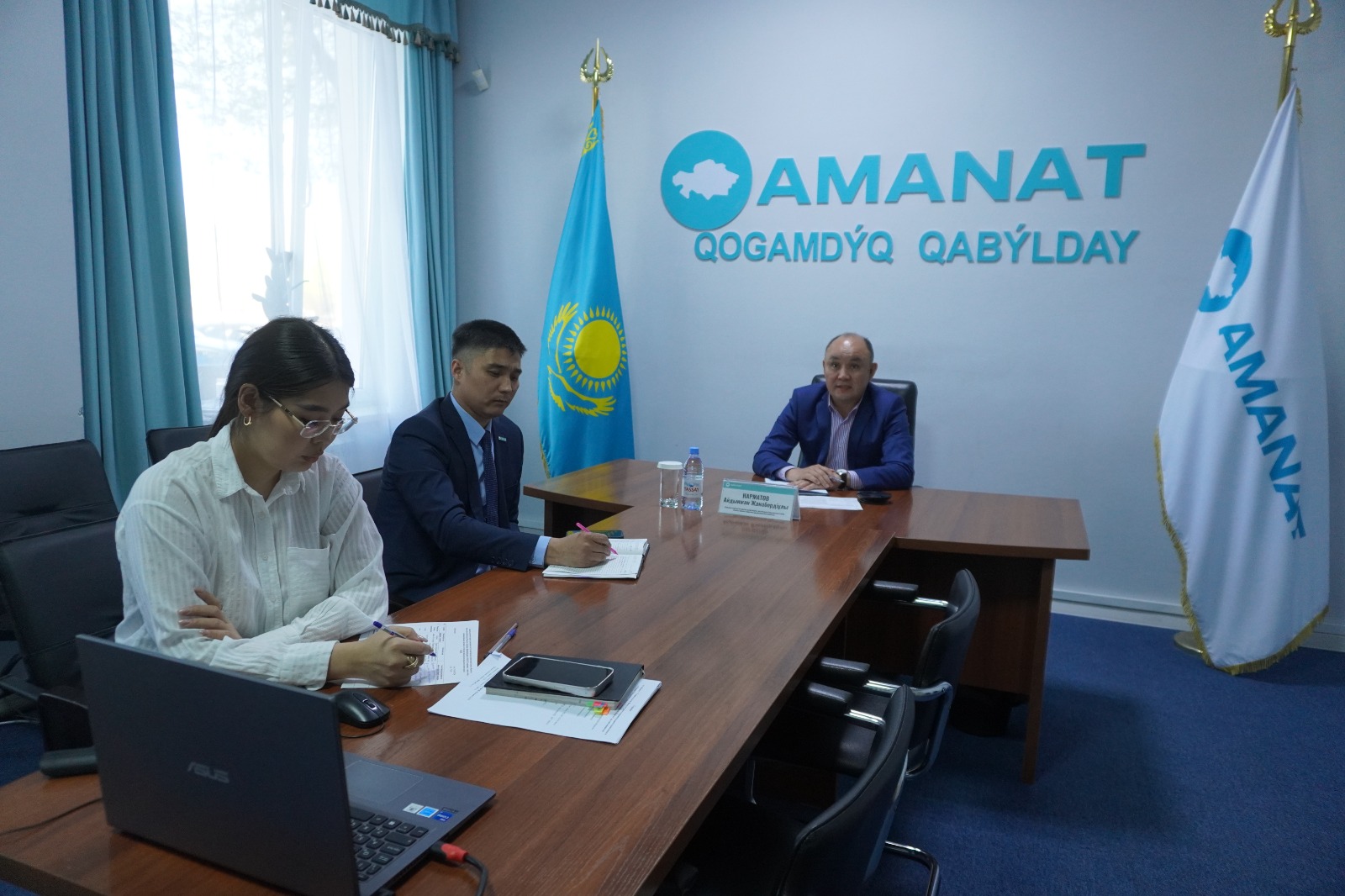 Руководитель Департамента Комитета по регулированию и контролю в сфере социальной защиты населения по Алматинской области Айдынжан Нарматов провёл общественный приём в Алматинском областном филиале партии «AMANAT».