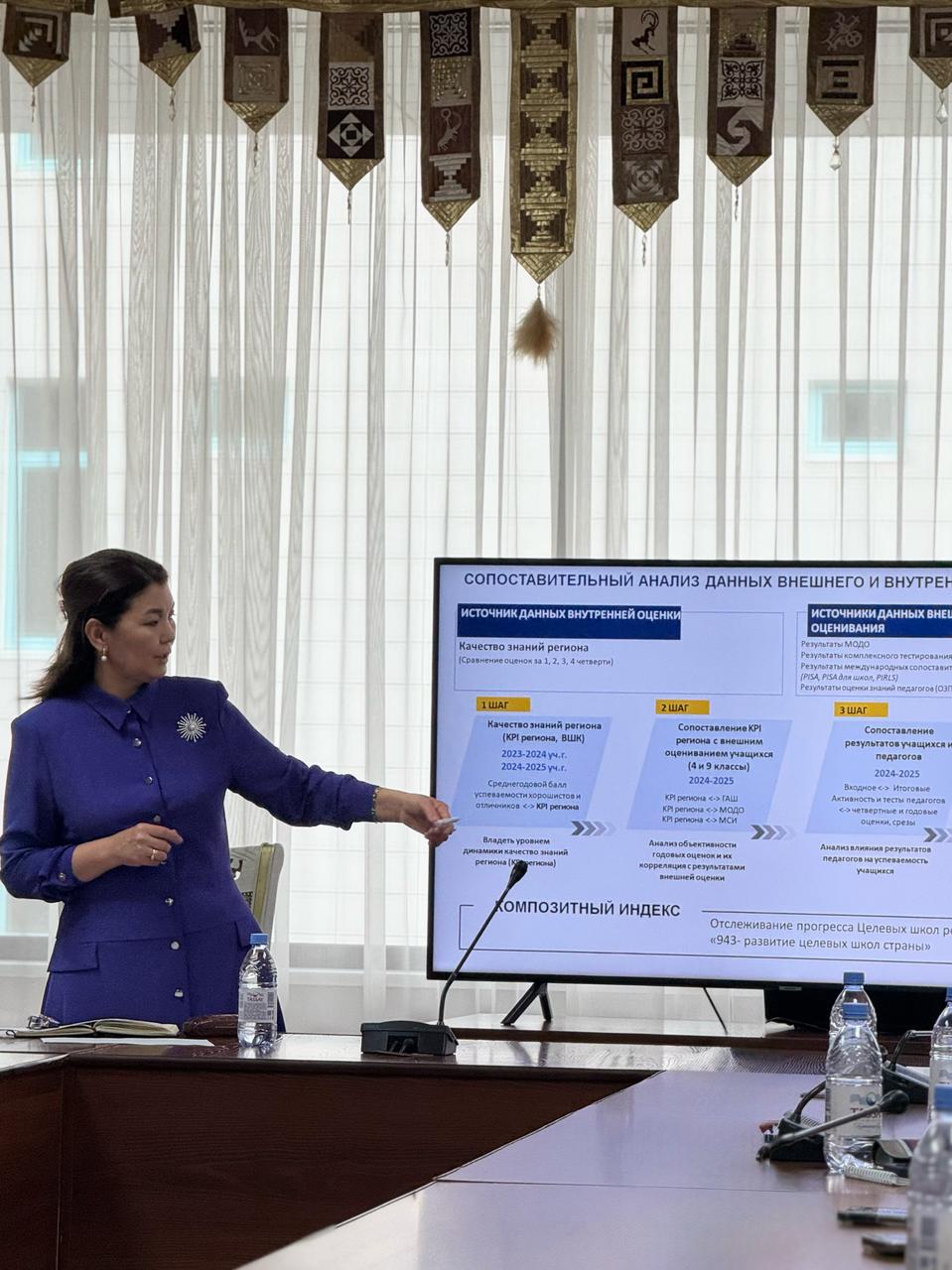 В первой части семинара заместитель председателя Комитета по обеспечению качества в сфере образования Майра Тұрғынбайқызы Мелдебекова акцентировала внимание руководителей территориальных департаментов на важности постоянного контроля за реализацией ключевых стратегических инициатив Президента и Министра просвещения. В частности, подробно обсуждены такие крупные инициативы, как «Модернизация 1000 сельских школ», «1000 лидеров изменений в образовании», «Комфортная школа», программа «Біртұтас тәрбие», проект «Целевые школы», а также меры по поддержке заслуженных педагогов Казахстана.