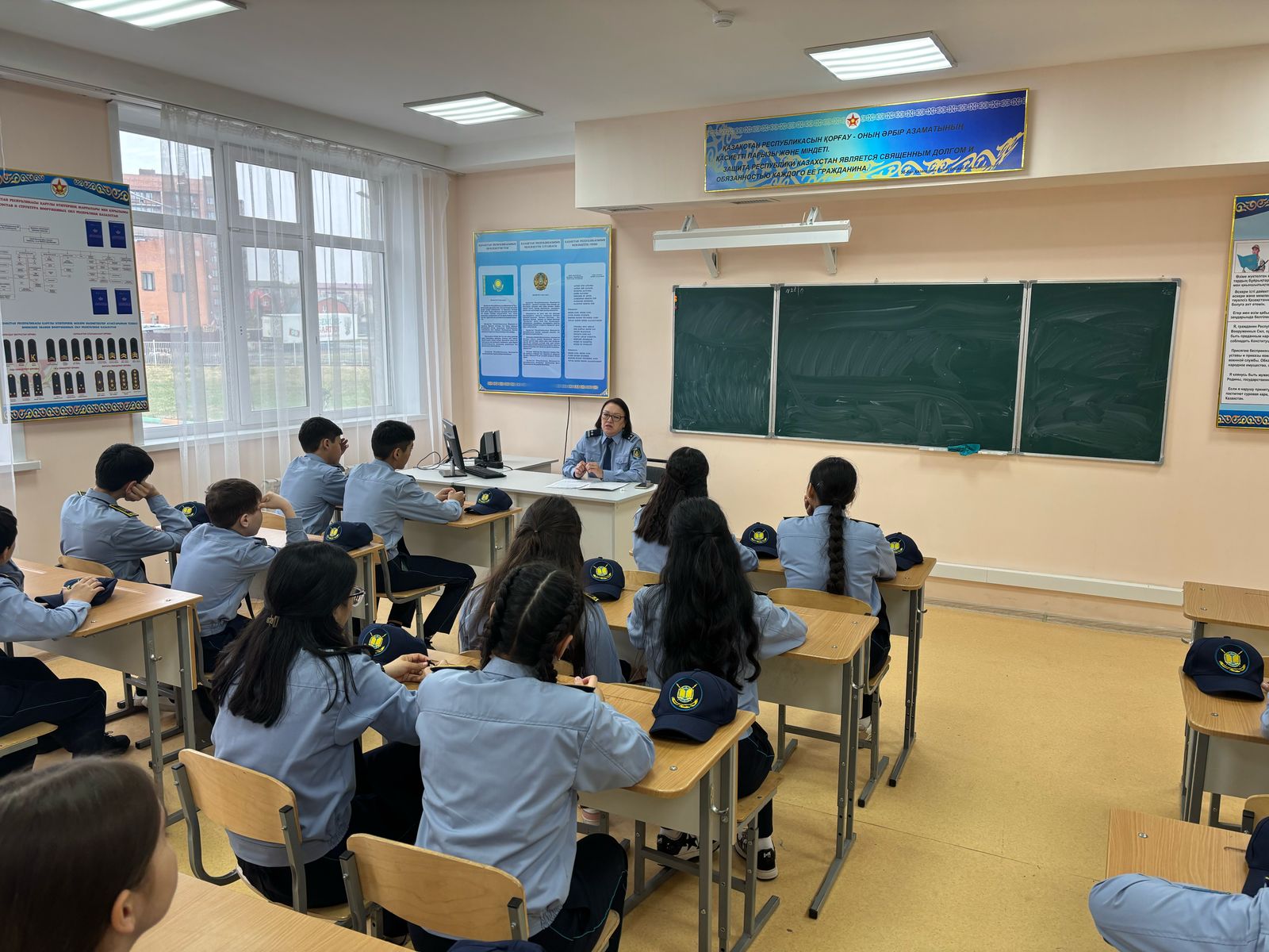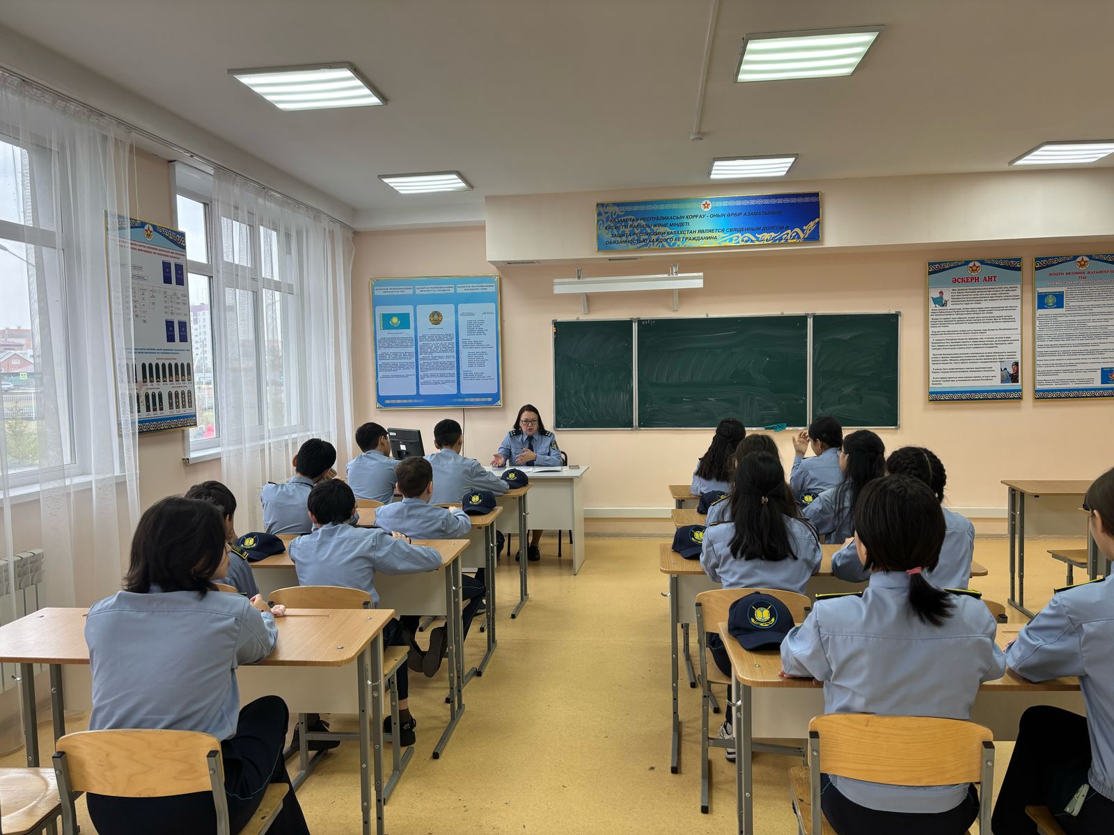 В Петропавловске в рамках оперативно-профилактического мероприятия «Подросток» офицеры полиции провели тематические занятия для учащихся правоохранительного класса «Жас сақшы» IT-школы-лицея имени Магжана Жумабаева.