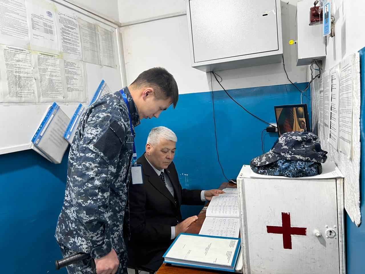 🔹В рамках своей деятельности Представитель Уполномоченный по правам человека Республики Казахстан по области Ұлытау посетил государственное учреждение «Изолятор временного содержания отдела полиции города Каражал департамента полиции области Ұлытау», где проверил соблюдение прав лиц, содержащихся в ИВС.