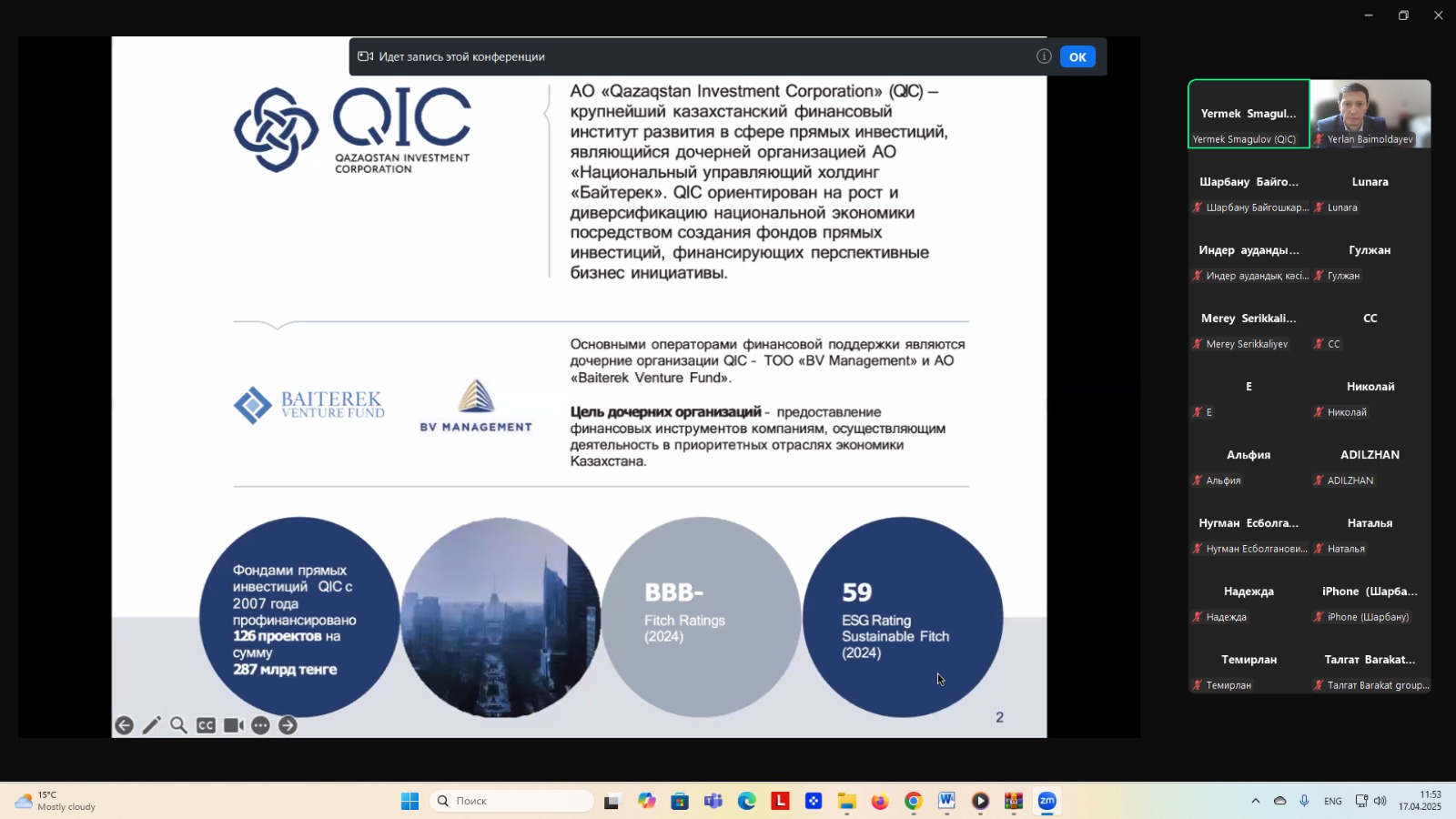 17 апреля 2025 года Департаментом юстиции Жамбылской области совместно с РГП «НИИС», АО «Фонд развития предпринимательства «ДАМУ»», Управление предпринимательства и индустриально-инновационного развития акимата Жамбылской области и Палатой предпринимателей «Атамекен» посредством платформы Zoom проведен семинар на темы: «Географические указания в продвижении национальных товаров», «Меры государственного стимулирования, направленные на повышение производительности» и «Инвестиционные преференции Жамбылской области» с участием, представителей заинтересованных организаций и субъектов предпринимательства региона.